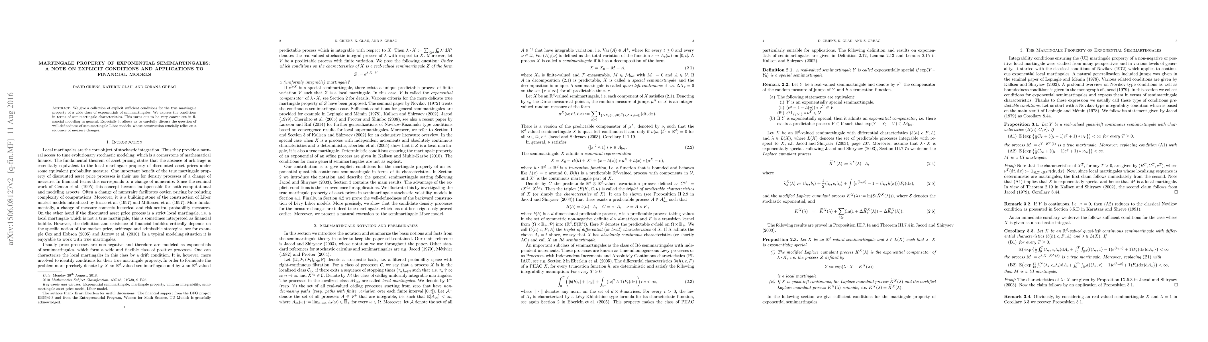 This paper provides explicit conditions for the martingale property of exponential semimartingales, expressed in terms of semimartingale characteristics, which facilitates financial modeling, particularly in ensuring the well-definedness of semimartingale Libor models.