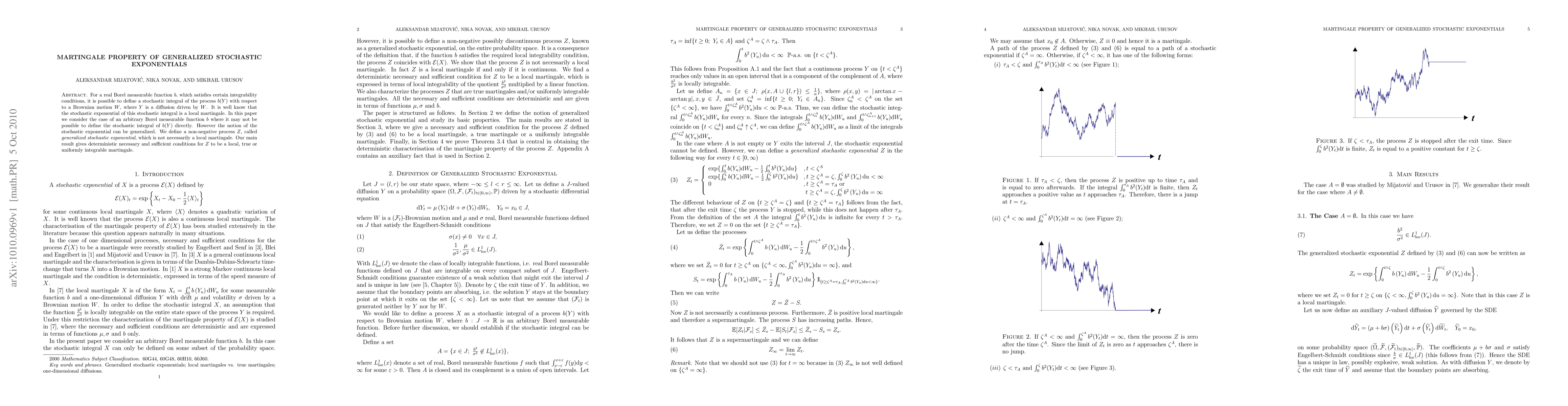 For a real Borel measurable function b, which satisfies certain integrability conditions, it is possible to define a stochastic integral of the process b(Y) with respect to a Brownian motion W, where Y is a diffusion driven by W. It is well know that the stochastic exponential of this stochastic integral is a local martingale. In this paper we consider the case of an arbitrary Borel measurable function b where it may not be possible to define the stochastic integral of b(Y) directly. However the notion of the stochastic exponential can be generalized. We define a non-negative process Z, called generalized stochastic exponential, which is not necessarily a local martingale. Our main result gives deterministic necessary and sufficient conditions for Z to be a local, true or uniformly integrable martingale.