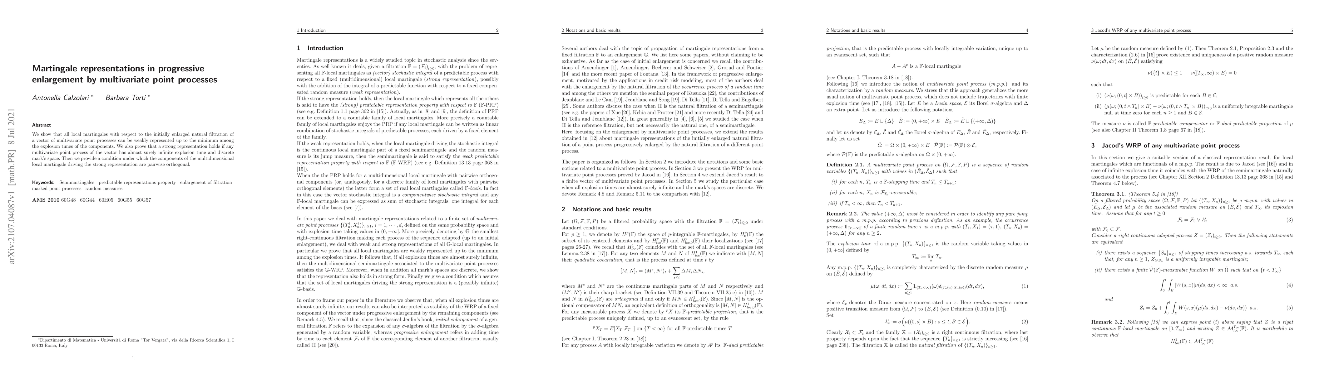 A study on multivariate point processes finds that local martingales can be weakly represented up to a shared explosion time, with strong representation possible under certain conditions; the components of the driving process can also be orthogonal.