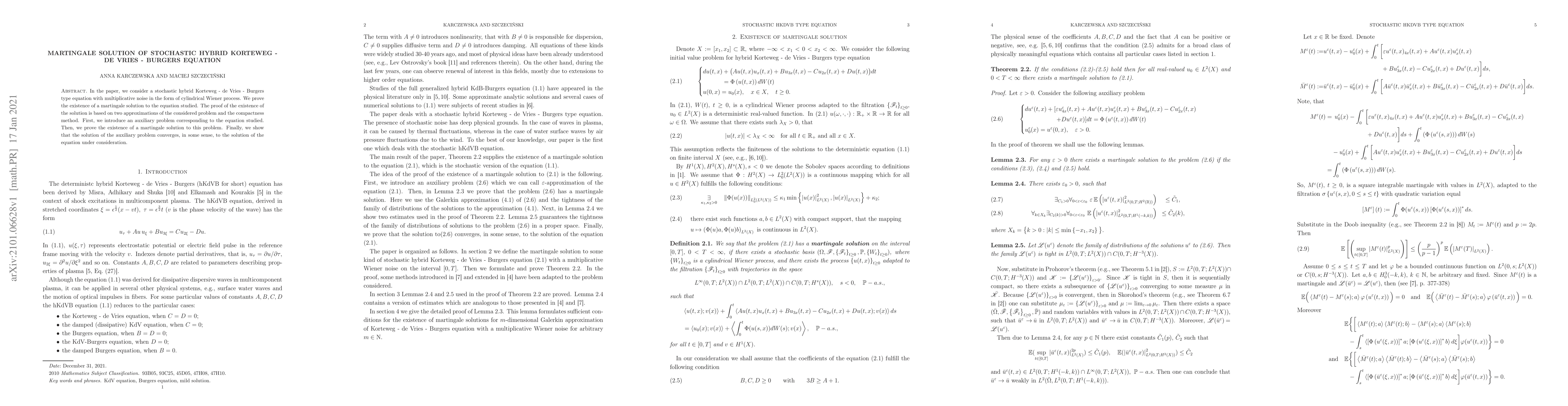 In the paper, we consider a stochastic hybrid Korteweg - de Vries - Burgers type equation with multiplicative noise in the form of cylindrical Wiener process. We prove the existence of a martingale solution to the equation studied. The proof of the existence of the solution is based on two approximations of the considered problem and the compactness method. First, we introduce an auxiliary problem corresponding to the equation studied. Then, we prove the existence of a martingale solution to this problem. Finally, we show that the solution of the auxiliary problem converges, in some sense, to the solution of the equation under consideration.