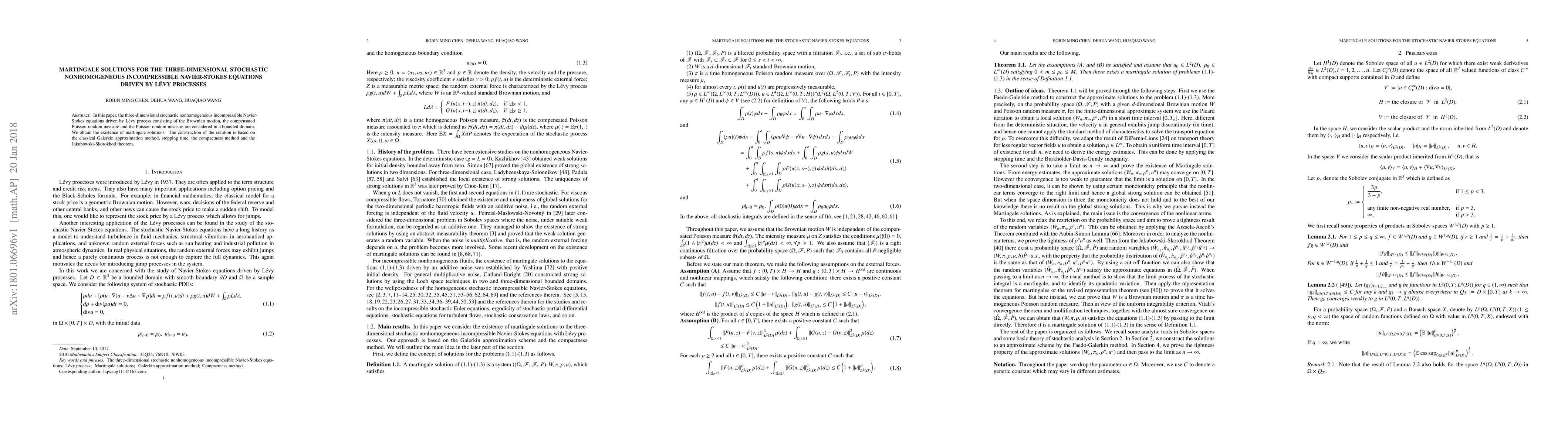 In this paper, the three-dimensional stochastic nonhomogeneous incompressible Navier-Stokes equations driven by L\'evy process consisting of the Brownian motion, the compensated Poisson random measure and the Poisson random measure are considered in a bounded domain. We obtain the existence of martingale solutions. The construction of the solution is based on the classical Galerkin approximation method, stopping time, the compactness method and the Jakubowski-Skorokhod theorem.