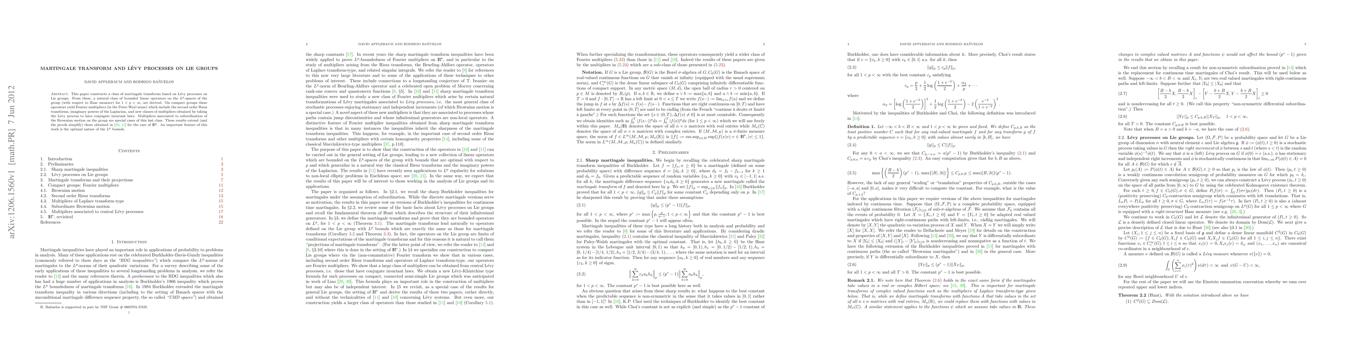 This paper develops martingale transforms based on Lévy processes on Lie groups, deriving bounded linear operators on $L^p$-spaces that yield Fourier multipliers, including second-order Riesz transforms and new multiplier classes. The results extend and simplify previous findings for $\mathbb{R}^n$, with optimal $L^p$ bounds.