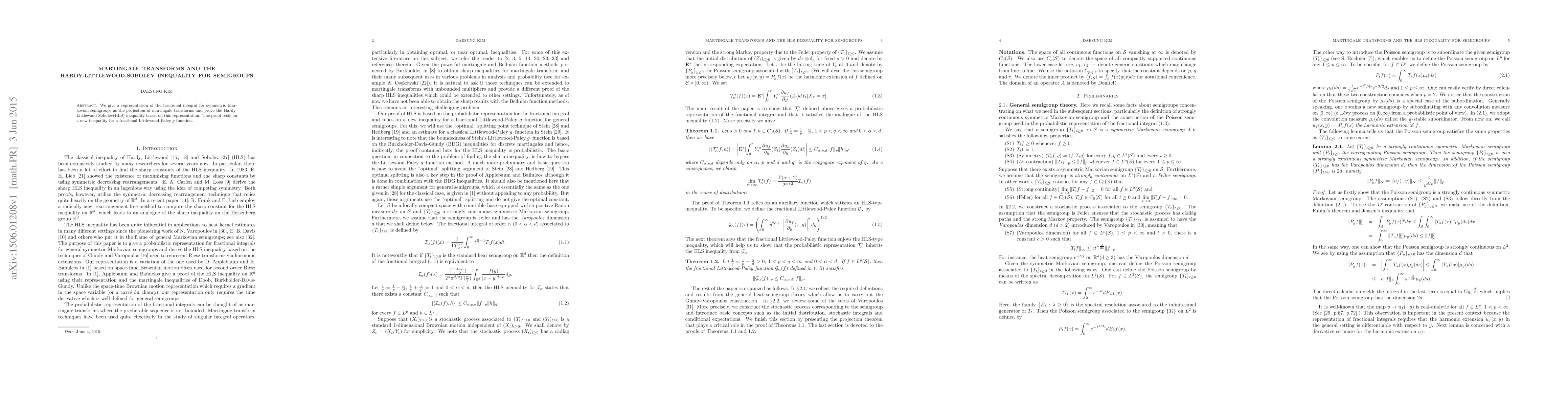 Summary: This paper represents the fractional integral for symmetric Markovian semigroups via martingale transforms and establishes the Hardy-Littlewood-Sobolev inequality using this representation, relying on a novel inequality for a fractional Littlewood-Paley $g$-function.