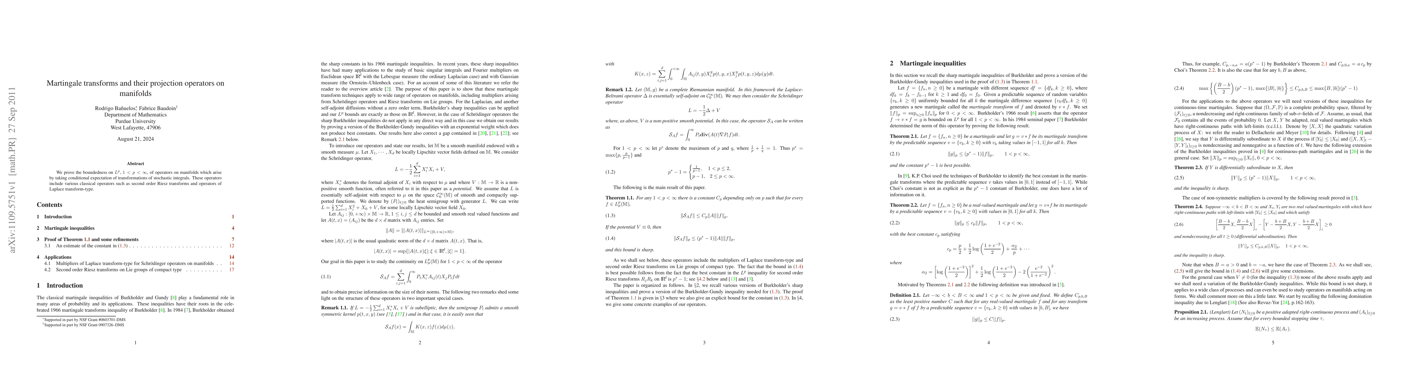 This paper establishes the $L^p$ boundedness, $1<p<\infty$, for operators on manifolds derived from conditional expectations of stochastic integral transformations, including second-order Riesz transforms and Laplace transform-type operators. The results extend classical operator theory to the manifold setting.