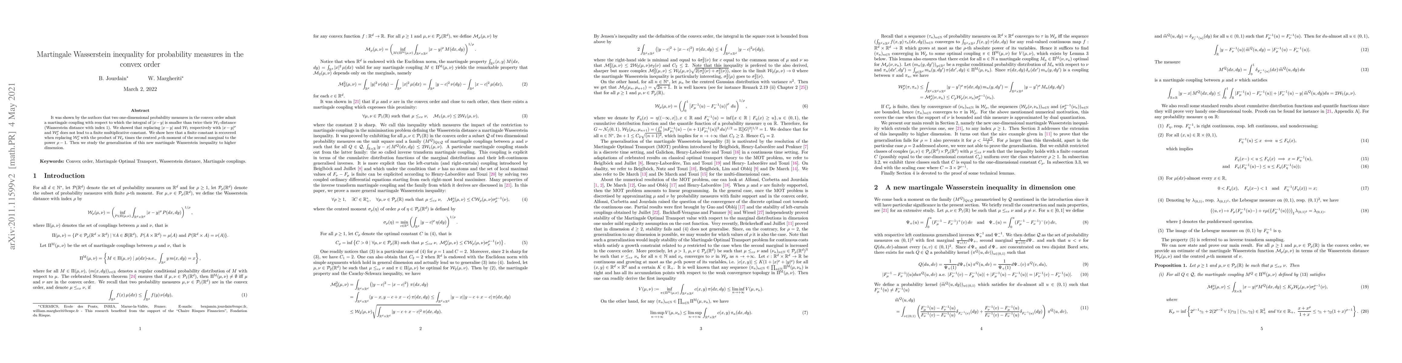 This paper establishes a Martingale Wasserstein inequality for probability measures in convex order, showing that a finite multiplicative constant can be recovered by modifying the Wasserstein distance and moment terms. The authors also explore the generalization of this inequality to higher dimensions.