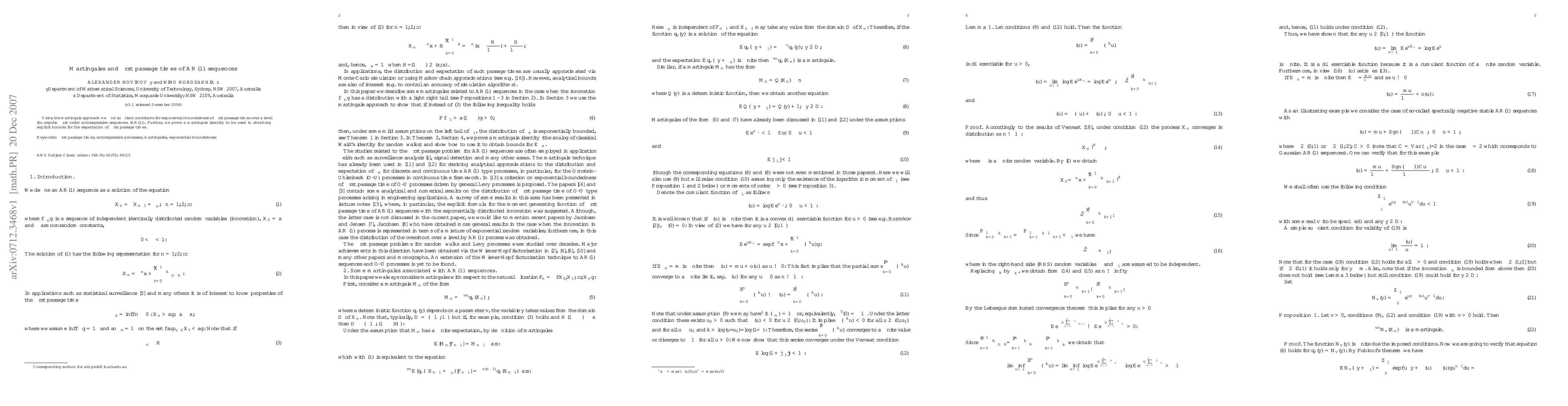 This paper establishes sufficient conditions for the exponential boundedness of first passage times in ergodic AR(1) sequences using the martingale approach, and it also proves a martingale identity to derive explicit bounds for the expectation of these first passage times.