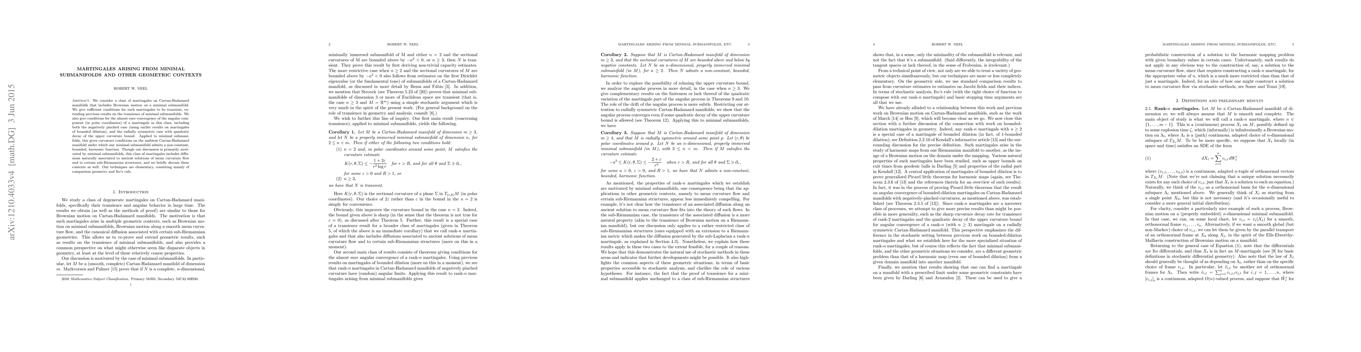 We consider a class of martingales on Cartan-Hadamard manifolds that includes Brownian motion on a minimal submanifold. We give sufficient conditions for such martingales to be transient, extending previous results on the transience of minimal submanifolds. We also give conditions for the almost sure convergence of the angular component (in polar coordinates) of a martingale in this class, including both the negatively pinched case (using earlier results on martingales of bounded dilation), and the radially symmetric case with quadratic decay of the upper curvature bound. Applied to minimal submanifolds, this gives curvature conditions on the ambient Cartan-Hadamard manifold under which any minimal submanifold admits a non-constant, bounded, harmonic function. Though our discussion is primarily motivated by minimal submanifolds, this class of martingales includes diffusions naturally associated to ancient solutions of mean curvature flow and to certain sub-Riemannian structures, and we briefly discuss these contexts as well. Our techniques are elementary, consisting mainly of comparison geometry and Ito's rule.