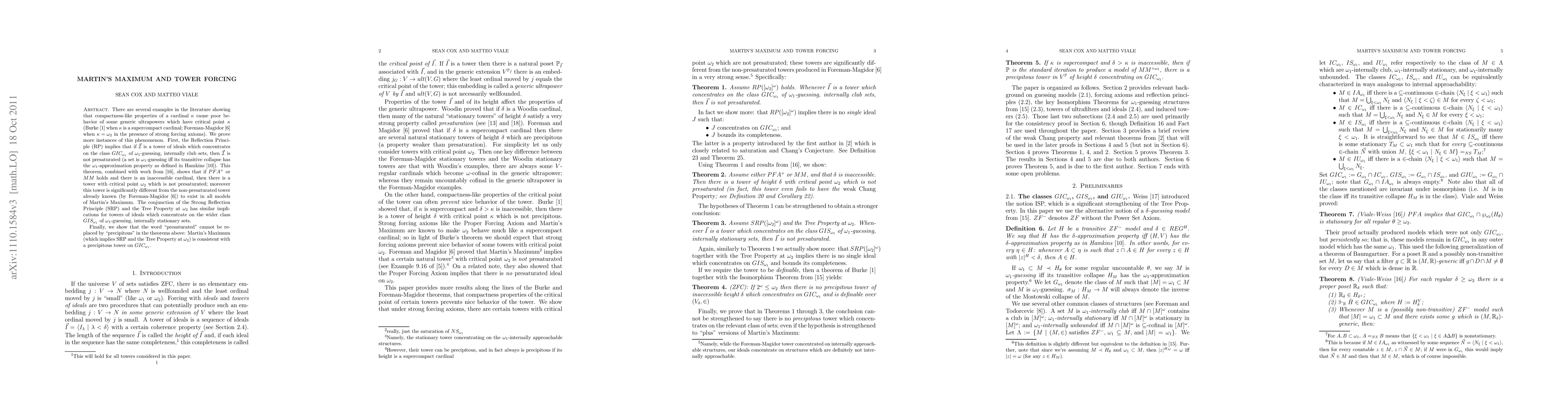 There are several examples in the literature showing that compactness-like properties of a cardinal $\kappa$ cause poor behavior of some generic ultrapowers which have critical point $\kappa$ (Burke \cite{MR1472122} when $\kappa$ is a supercompact cardinal; Foreman-Magidor \cite{MR1359154} when $\kappa = \omega_2$ in the presence of strong forcing axioms). We prove more instances of this phenomenon. First, the Reflection Principle (RP) implies that if $\vec{\mathcal{I}}$ is a tower of ideals which concentrates on the class $GIC_{\omega_1}$ of $\omega_1$-guessing, internally club sets, then $\vec{\mathcal{I}}$ is not presaturated (a set is $\omega_1$-guessing iff its transitive collapse has the $\omega_1$-approximation property as defined in Hamkins \cite{MR2540935}). This theorem, combined with work from \cite{VW_ISP}, shows that if $PFA^+$ or $MM$ holds and there is an inaccessible cardinal, then there is a tower with critical point $\omega_2$ which is not presaturated; moreover this tower is significantly different from the non-presaturated tower already known (by Foreman-Magidor \cite{MR1359154}) to exist in all models of Martin's Maximum. The conjunction of the Strong Reflection Principle (SRP) and the Tree Property at $\omega_2$ has similar implications for towers of ideals which concentrate on the wider class $GIS_{\omega_1}$ of $\omega_1$-guessing, internally stationary sets. Finally, we show that the word "presaturated" cannot be replaced by "precipitous" in the theorems above: Martin's Maximum (which implies SRP and the Tree Property at $\omega_2$) is consistent with a precipitous tower on $GIC_{\omega_1}$.