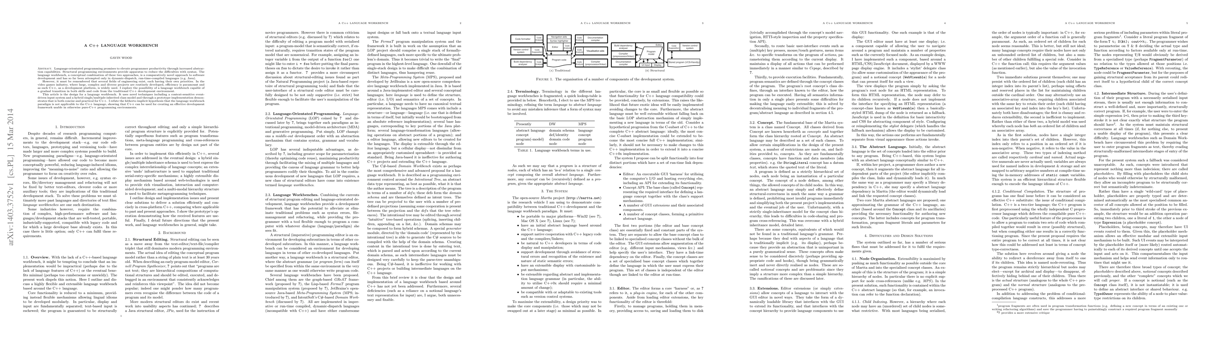 Language-orientated programming promises to elevate programmer productivity through increased abstrac- tion capabilities. Structural programming environments provide apparatus to reduce the difficulties with syntax. The language workbench, a conceptual combination of these two approaches, is a comparatively novel approach to software development and has so far been attempted only in dynamic-dispatch, run-time-compiled languages (e.g. Java). However, it must be remembered that several fields of engineering exist, each having their own priorities. In the video games industry, where large, complex and diverse projects are routinely developed, efficiency is paramount and as such C++, as a development platform, is widely used. I explore the possibility of a language workbench capable of a gradual transition in both skills and code from the traditional C++ development environment. This article is the design for a language workbench. It uses novel techniques including a context-sensitive event- driven input system and a hybrid single/multiple-inherited class model and through a prototype implementation demon- strates that is both concise and practical for C++. I refute the hitherto implicit hypothesis that the language workbench paradigm is not applicable to the C++ language, showing that C++ can be used for creating an effective development framework usable in otherwise pure-C++ programming environments.