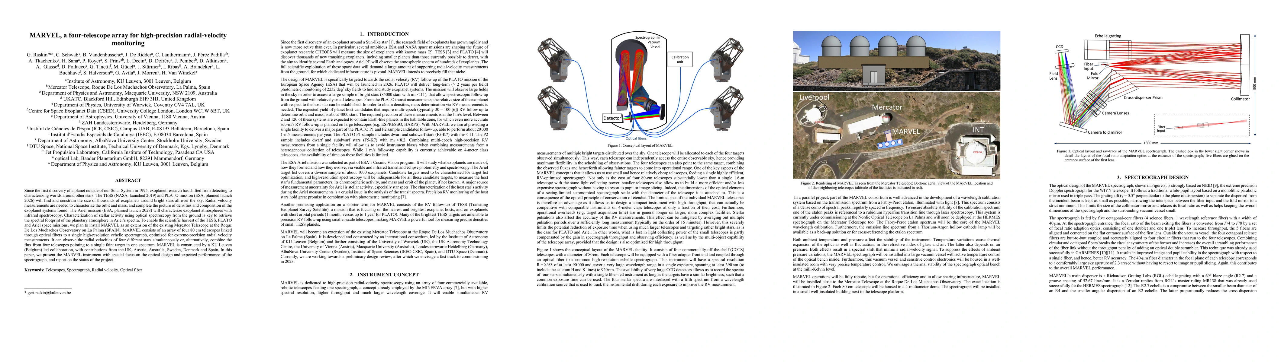 The MARVEL instrument is a four-telescope array designed to enable high-precision radial velocity monitoring of exoplanet systems, crucial for characterizing their orbits and masses.