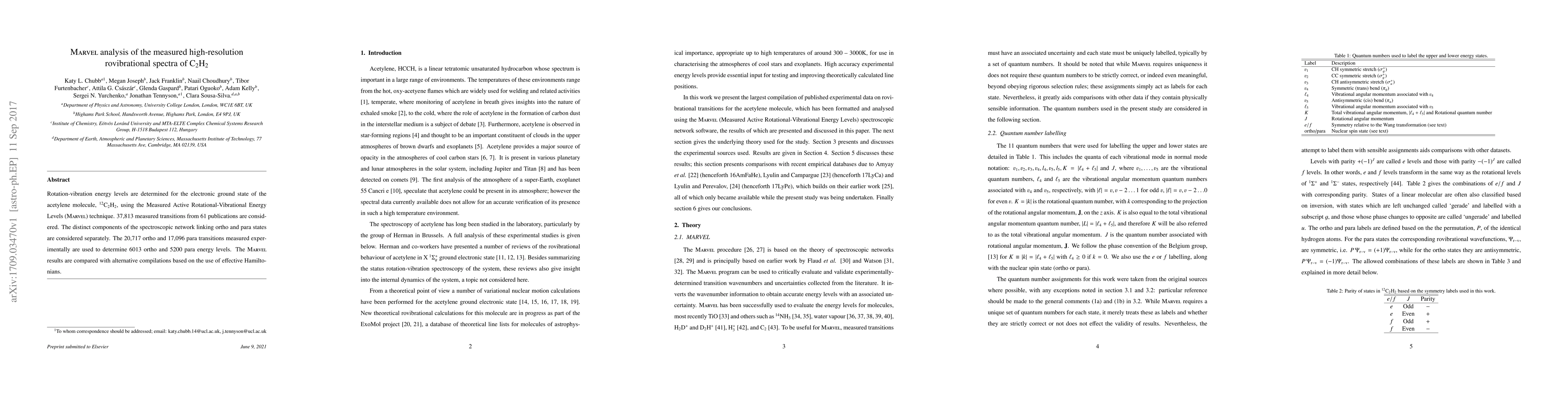 Researchers used a new technique called MARVEL to analyze high-resolution spectroscopy of acetylene molecules, providing detailed energy levels for the molecule.
