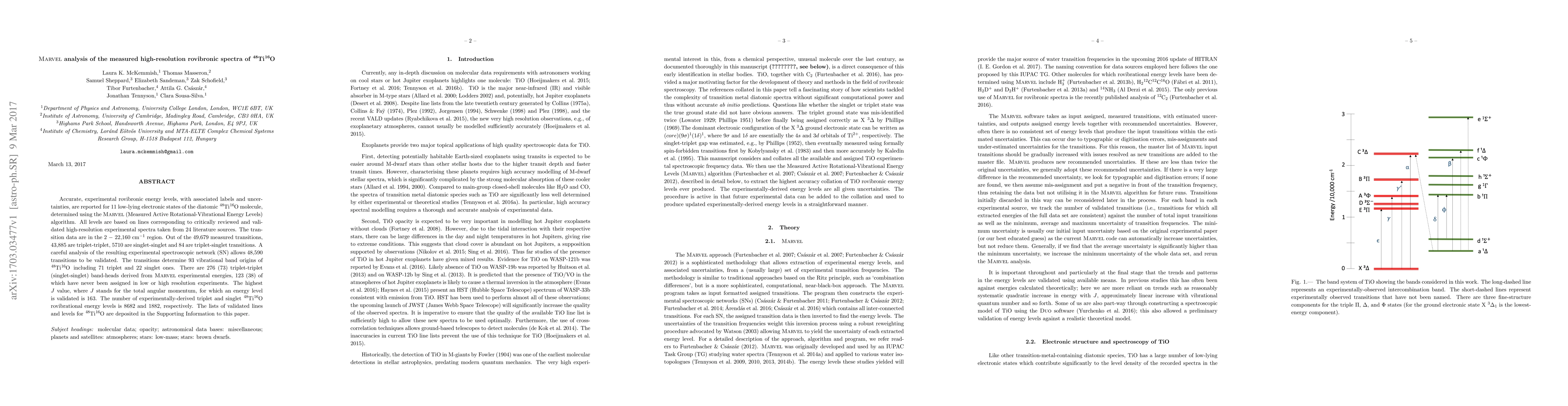 Researchers report high-resolution energy levels for 11 low-lying electronic states of TiO using a new algorithm, providing accurate data on transitions and vibrational band origins.