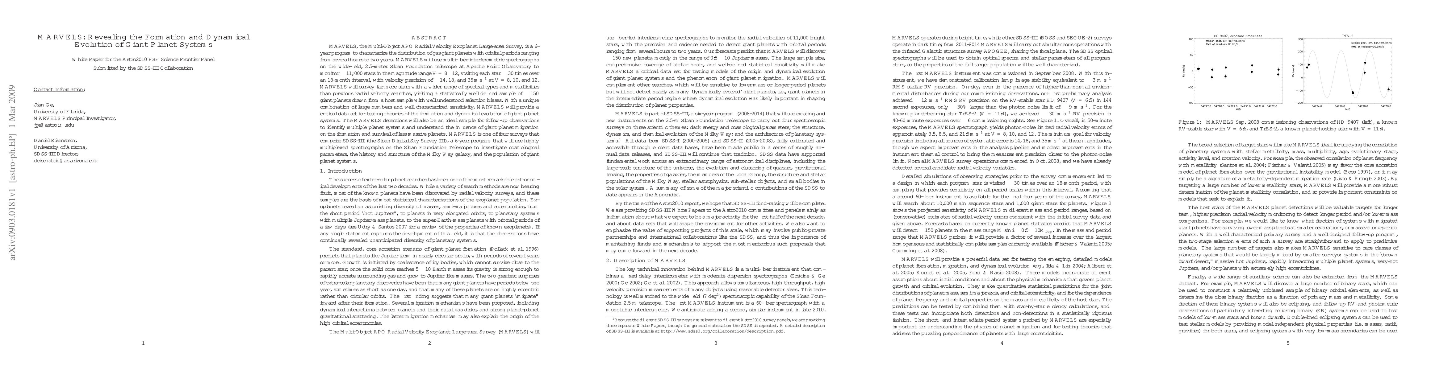 MARVELS is a comprehensive survey designed to characterize gas giant planets using radial velocity techniques, aiming to reveal the formation and evolution of giant planet systems by surveying ~11,000 stars. The results will provide a statistically significant sample of ~150 giant planets, offering insights into planet formation theories and the dynamics of planetary migration.