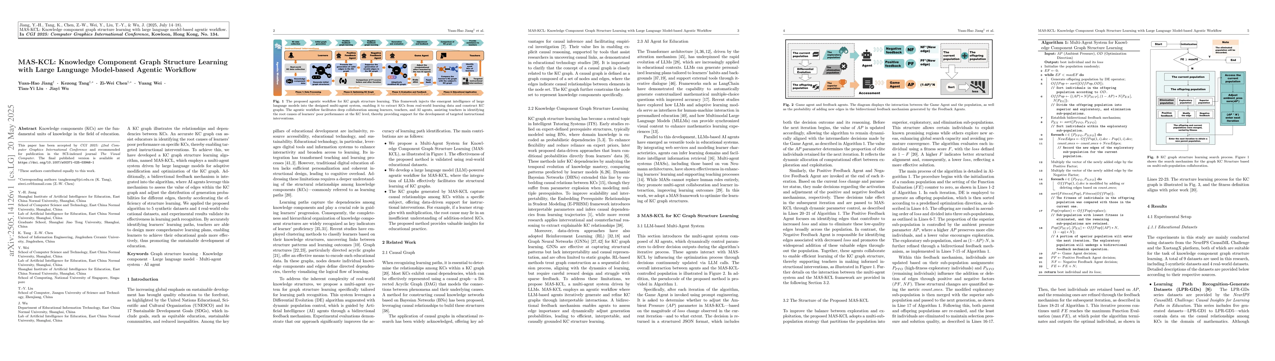 MAS-KCL, a novel KC graph structure learning algorithm employing a multi-agent system with large language models and a bidirectional feedback mechanism for adaptive KC graph optimization.