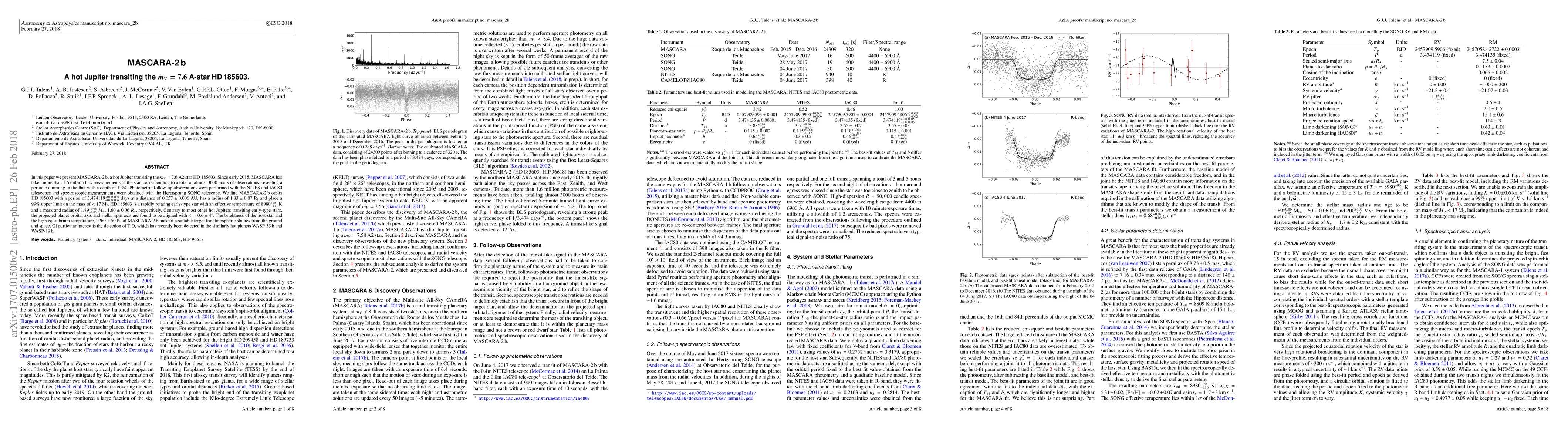 This paper introduces MASCARA-2 b, a hot Jupiter transiting the A-type star HD 185603, characterized by a 3.47-day orbit and a radius of 1.83 RJ, with a 99% upper mass limit of 17 MJ. The planet's alignment with the star's rotation and its high equilibrium temperature make it a prime target for atmospheric studies, particularly for detecting TiO.
