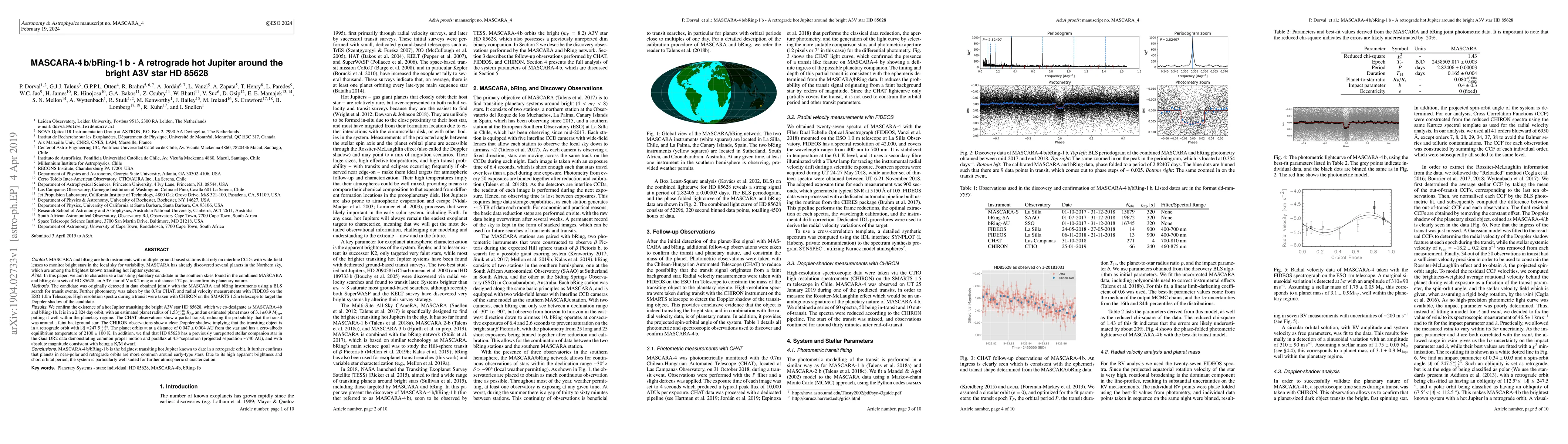 This paper confirms the existence of MASCARA-4b/bRing-1b, a retrograde hot Jupiter transiting the A3V star HD 85628, characterized through combined MASCARA and bRing data. The planet has a 2.824-day orbit, radius of $1.53 \pm 0.07 R_{\rm{Jup}}$, and mass of $3.1 \pm 0.9 M_{\rm{Jup}}$.