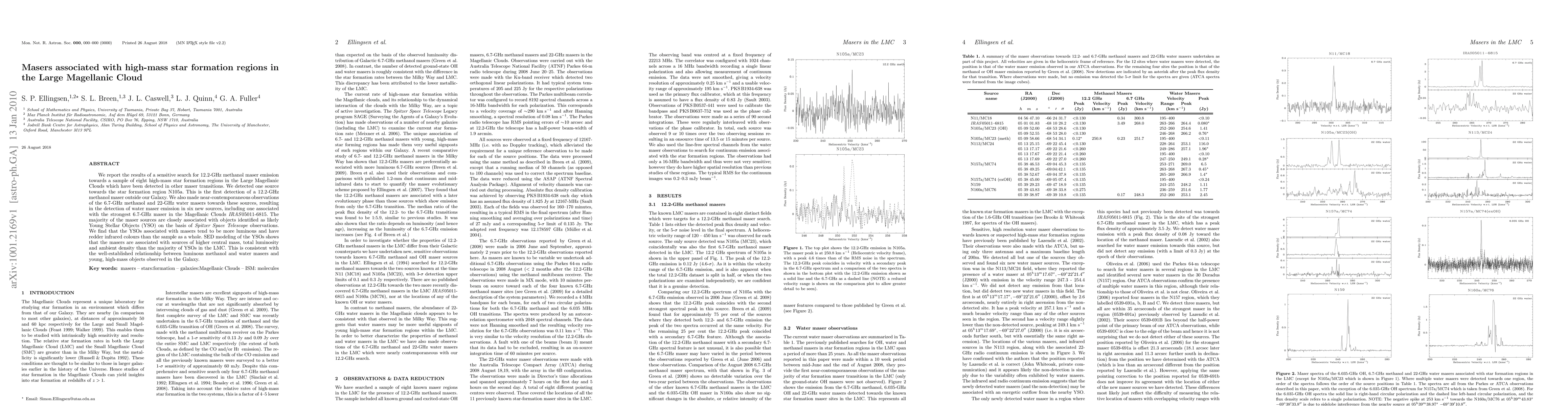 This study detected 12.2 GHz methanol maser emission in the Large Magellanic Cloud, marking the first such detection outside the Milky Way. Additionally, it identified water maser emission in six new regions, revealing a correlation between maser sources and luminous, high-mass young stellar objects (YSOs) with higher central mass and luminosity.