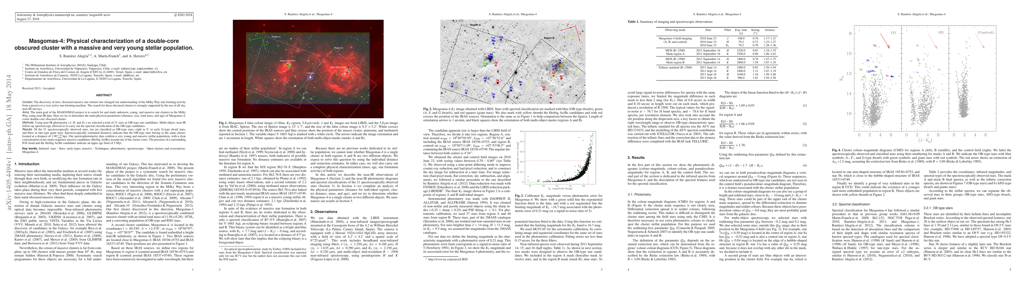 The Masgomas-4 cluster, discovered via near-IR surveys, is a double-core obscured cluster with a massive and very young stellar population, located at a distance of 1.90 kpc, featuring OB-type stars and pre-main-sequence Herbig Ae/Be stars, indicating an age of no more than 5 Myr.