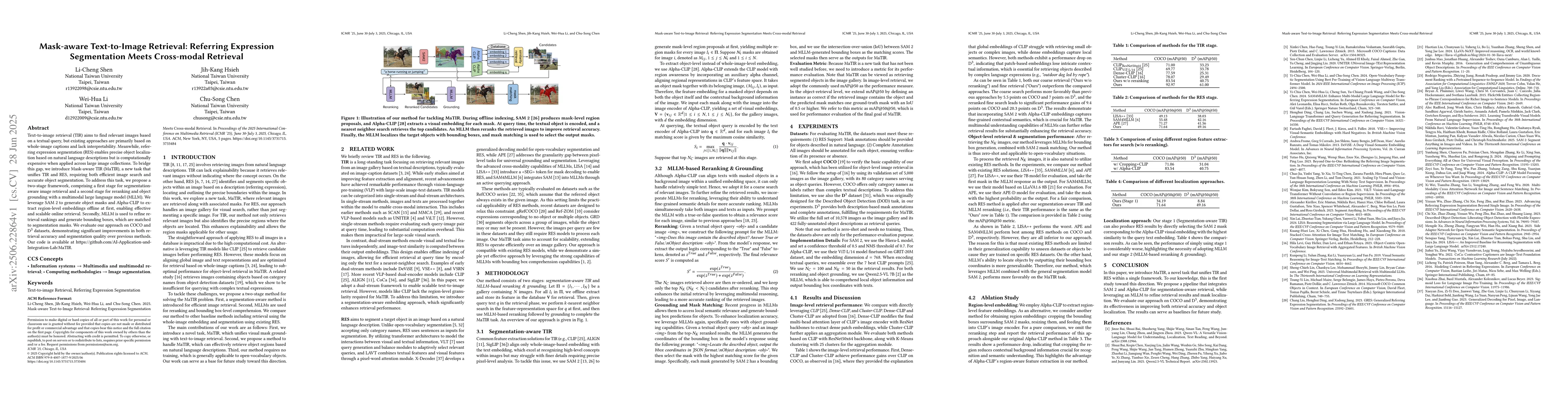 Text-to-image retrieval (TIR) aims to find relevant images based on a textual query, but existing approaches are primarily based on whole-image captions and lack interpretability. Meanwhile, referring expression segmentation (RES) enables precise object localization based on natural language descriptions but is computationally expensive when applied across large image collections. To bridge this gap, we introduce Mask-aware TIR (MaTIR), a new task that unifies TIR and RES, requiring both efficient image search and accurate object segmentation. To address this task, we propose a two-stage framework, comprising a first stage for segmentation-aware image retrieval and a second stage for reranking and object grounding with a multimodal large language model (MLLM). We leverage SAM 2 to generate object masks and Alpha-CLIP to extract region-level embeddings offline at first, enabling effective and scalable online retrieval. Secondly, MLLM is used to refine retrieval rankings and generate bounding boxes, which are matched to segmentation masks. We evaluate our approach on COCO and D$^3$ datasets, demonstrating significant improvements in both retrieval accuracy and segmentation quality over previous methods.