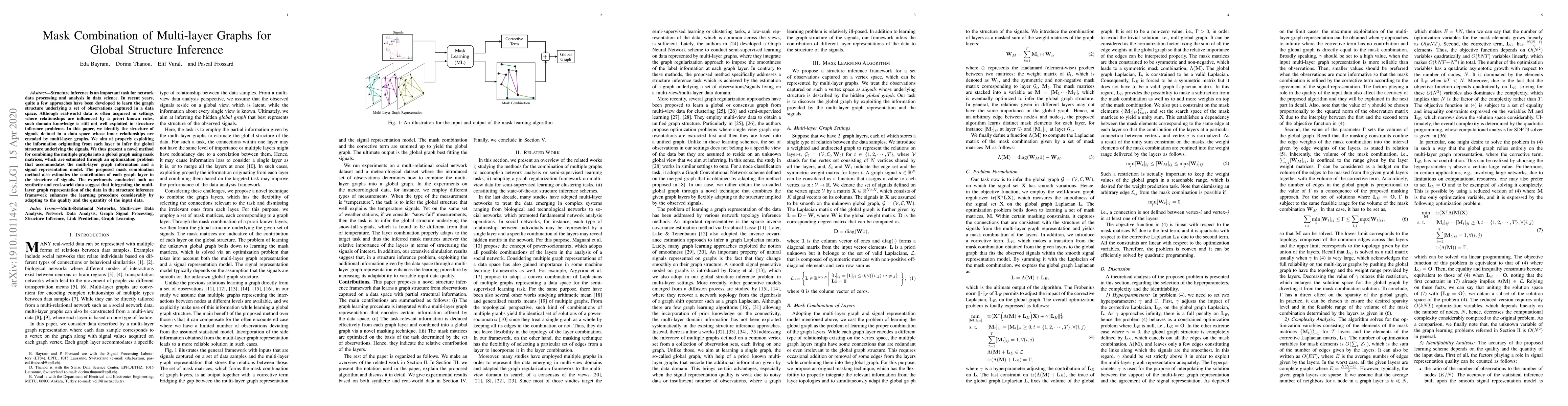 Structure inference is an important task for network data processing and analysis in data science. In recent years, quite a few approaches have been developed to learn the graph structure underlying a set of observations captured in a data space. Although real-world data is often acquired in settings where relationships are influenced by a priori known rules, such domain knowledge is still not well exploited in structure inference problems. In this paper, we identify the structure of signals defined in a data space whose inner relationships are encoded by multi-layer graphs. We aim at properly exploiting the information originating from each layer to infer the global structure underlying the signals. We thus present a novel method for combining the multiple graphs into a global graph using mask matrices, which are estimated through an optimization problem that accommodates the multi-layer graph information and a signal representation model. The proposed mask combination method also estimates the contribution of each graph layer in the structure of signals. The experiments conducted both on synthetic and real-world data suggest that integrating the multi-layer graph representation of the data in the structure inference framework enhances the learning procedure considerably by adapting to the quality and the quantity of the input data.