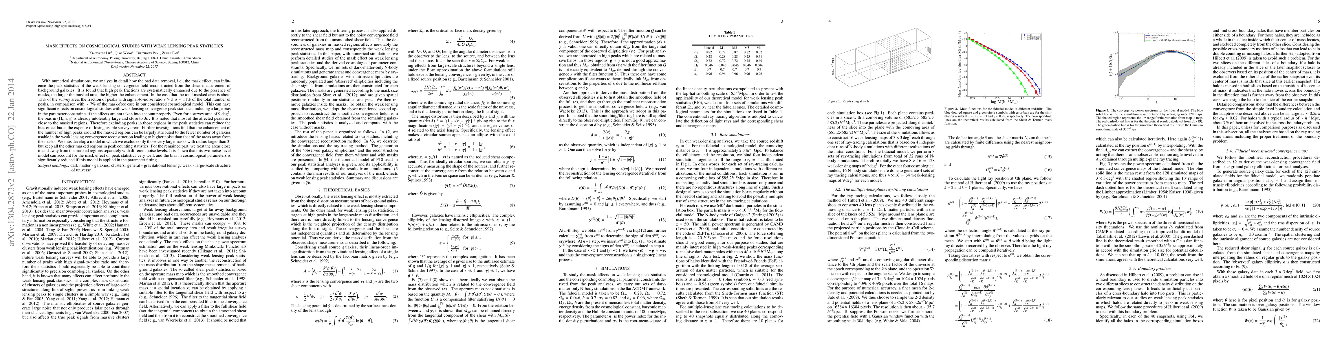 This paper explores the impact of masking on weak lensing peak statistics in cosmological studies, finding that larger masked areas enhance high peak fractions, leading to significant biases in cosmological parameters. A two-noise-level model is proposed to mitigate these biases, effectively reducing the systematic errors in $(\Omega_m, \sigma_8)$ estimates.