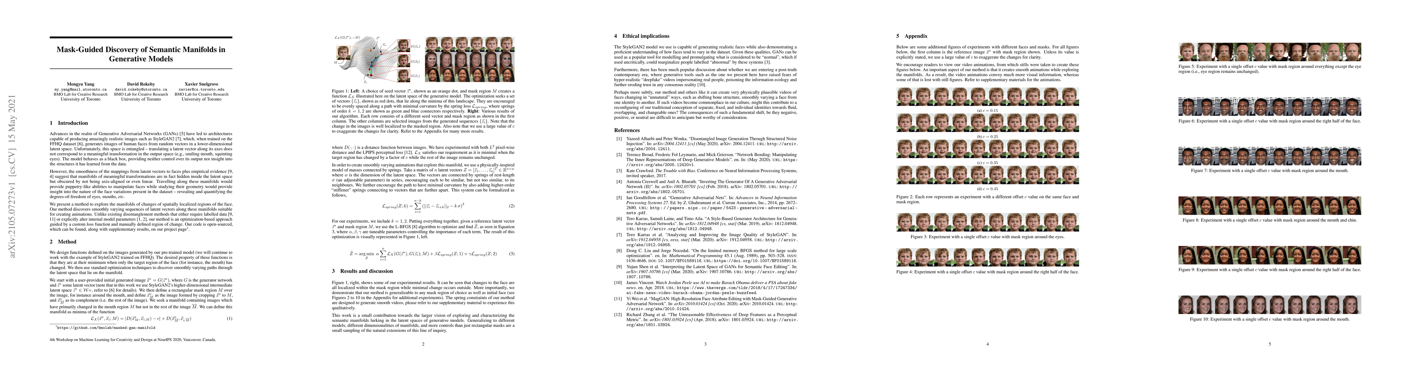 Advances in the realm of Generative Adversarial Networks (GANs) have led to architectures capable of producing amazingly realistic images such as StyleGAN2, which, when trained on the FFHQ dataset, generates images of human faces from random vectors in a lower-dimensional latent space. Unfortunately, this space is entangled - translating a latent vector along its axes does not correspond to a meaningful transformation in the output space (e.g., smiling mouth, squinting eyes). The model behaves as a black box, providing neither control over its output nor insight into the structures it has learned from the data. We present a method to explore the manifolds of changes of spatially localized regions of the face. Our method discovers smoothly varying sequences of latent vectors along these manifolds suitable for creating animations. Unlike existing disentanglement methods that either require labelled data or explicitly alter internal model parameters, our method is an optimization-based approach guided by a custom loss function and manually defined region of change. Our code is open-sourced, which can be found, along with supplementary results, on our project page: https://github.com/bmolab/masked-gan-manifold