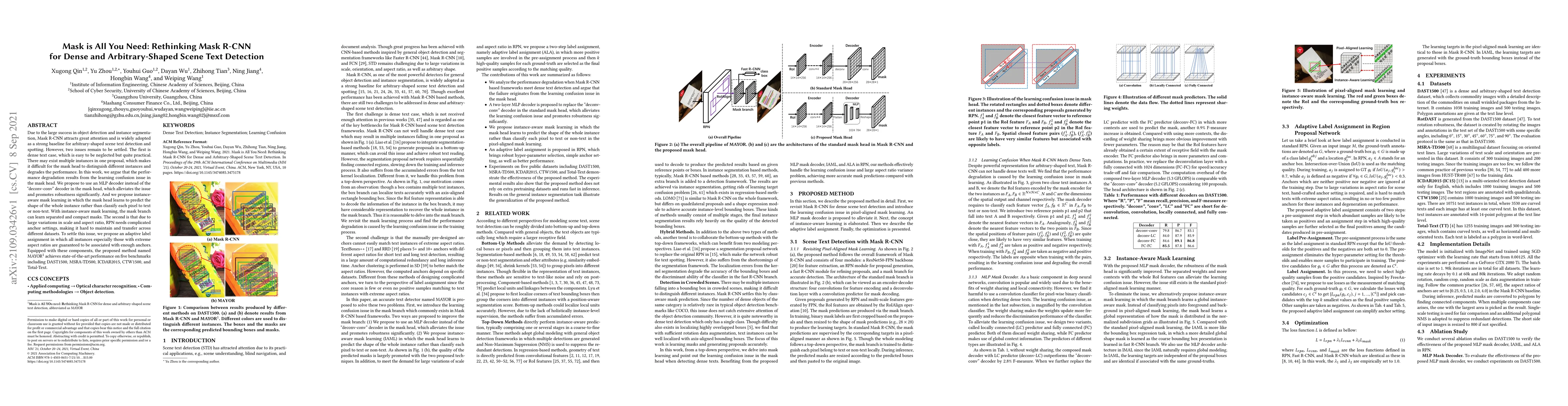 Due to the large success in object detection and instance segmentation, Mask R-CNN attracts great attention and is widely adopted as a strong baseline for arbitrary-shaped scene text detection and spotting. However, two issues remain to be settled. The first is dense text case, which is easy to be neglected but quite practical. There may exist multiple instances in one proposal, which makes it difficult for the mask head to distinguish different instances and degrades the performance. In this work, we argue that the performance degradation results from the learning confusion issue in the mask head. We propose to use an MLP decoder instead of the "deconv-conv" decoder in the mask head, which alleviates the issue and promotes robustness significantly. And we propose instance-aware mask learning in which the mask head learns to predict the shape of the whole instance rather than classify each pixel to text or non-text. With instance-aware mask learning, the mask branch can learn separated and compact masks. The second is that due to large variations in scale and aspect ratio, RPN needs complicated anchor settings, making it hard to maintain and transfer across different datasets. To settle this issue, we propose an adaptive label assignment in which all instances especially those with extreme aspect ratios are guaranteed to be associated with enough anchors. Equipped with these components, the proposed method named MAYOR achieves state-of-the-art performance on five benchmarks including DAST1500, MSRA-TD500, ICDAR2015, CTW1500, and Total-Text.