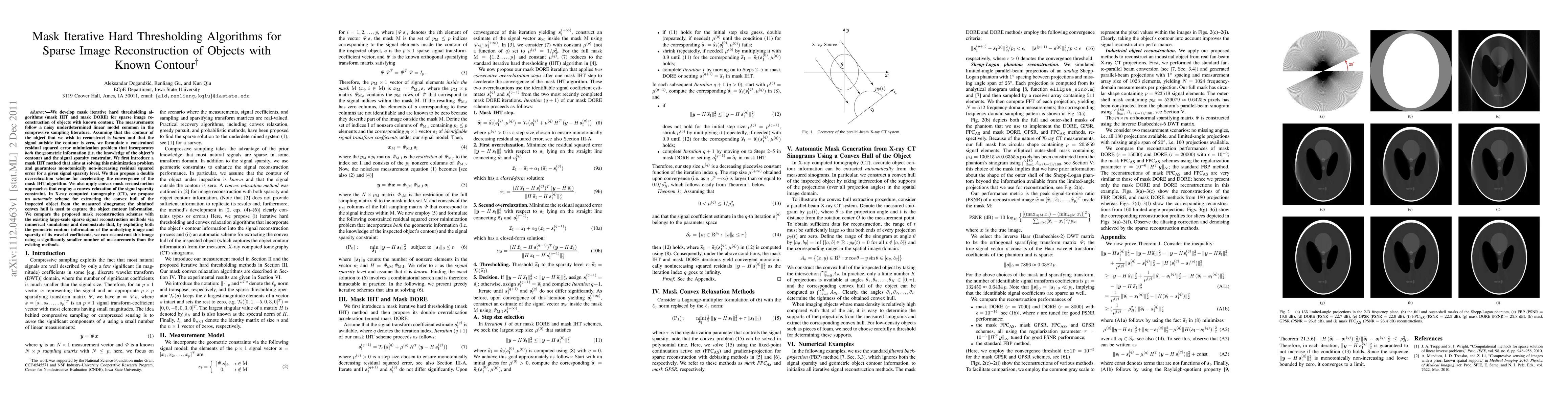 This paper develops mask iterative hard thresholding algorithms (mask IHT and mask DORE) for sparse image reconstruction of objects with known contours, leveraging both geometric contour information and signal sparsity. The proposed methods outperform existing large-scale sparse reconstruction techniques by requiring fewer measurements, as demonstrated through numerical simulations in X-ray computed tomography.