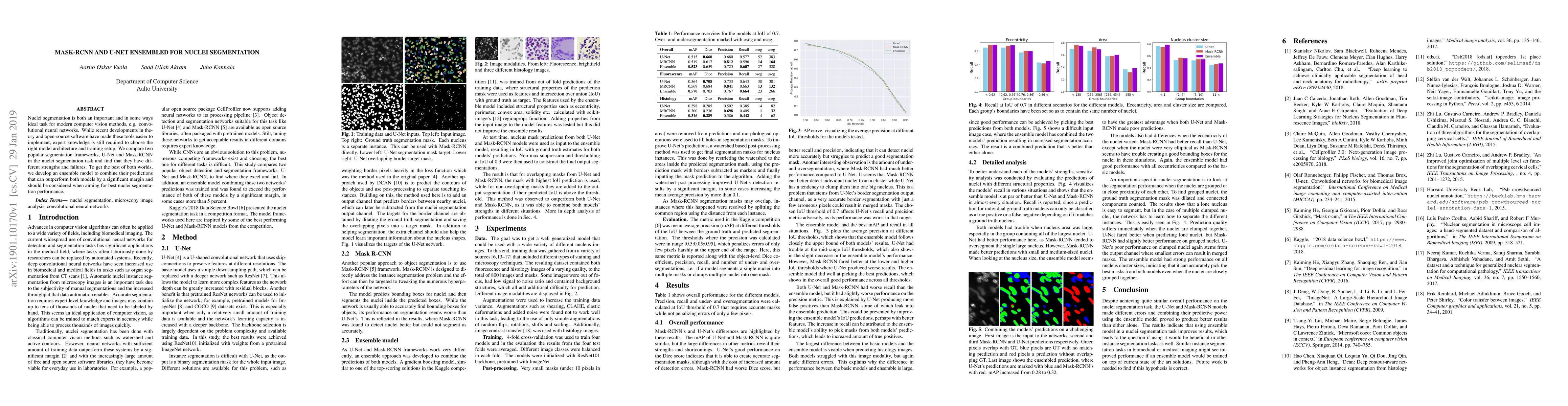 This paper compares U-Net and Mask-RCNN for nuclei segmentation, finding each has distinct advantages and weaknesses. An ensemble model combining both frameworks significantly outperforms individual models, suggesting it should be preferred for optimal nuclei segmentation results.