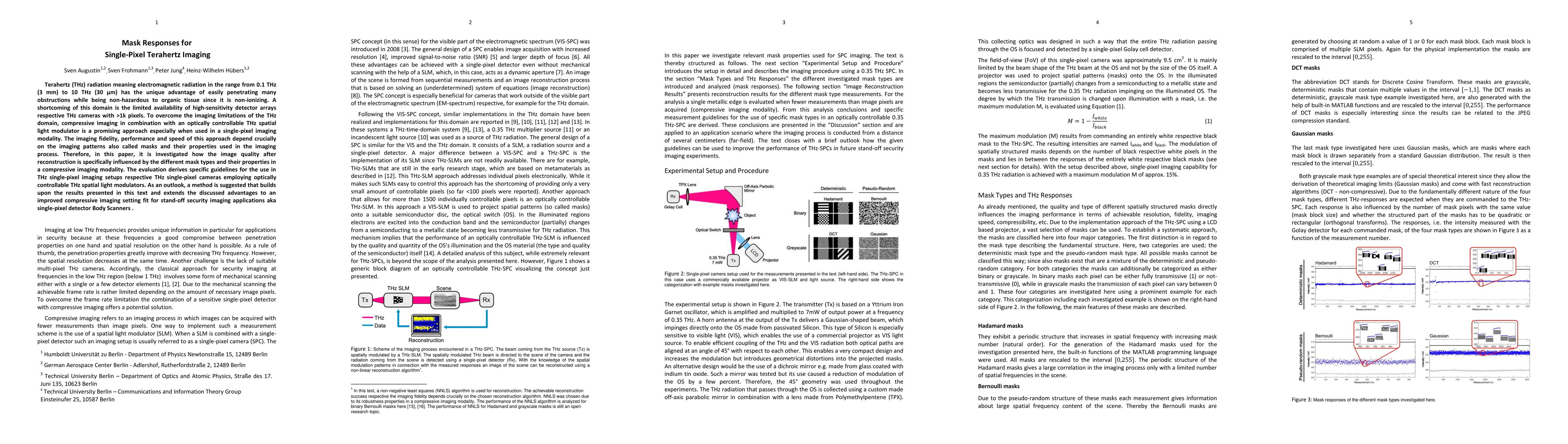 This paper investigates the influence of various mask types on image quality in single-pixel terahertz imaging, proposing guidelines for their use in THz cameras. It also suggests extending these findings for enhanced compressive imaging in security applications like single-pixel detector body scanners.