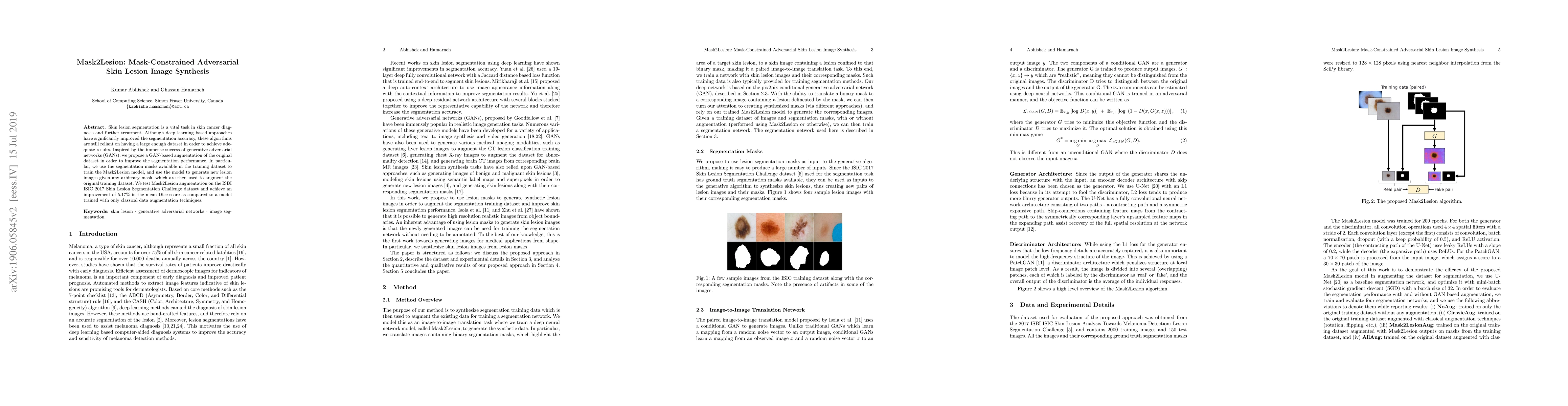 This paper proposes a GAN-based model called Mask2Lesion to generate synthetic skin lesion images using segmentation masks, enhancing the original dataset for improved skin cancer diagnosis. The method achieves a 5.17% improvement in mean Dice score compared to classical augmentation techniques on the ISBI ISIC 2017 dataset.