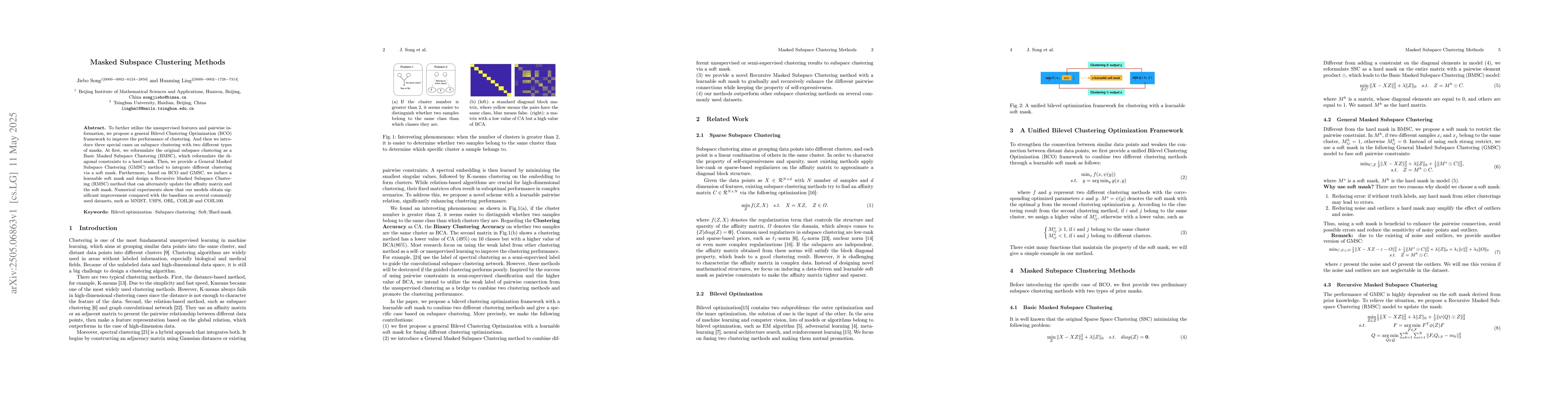 This research introduces novel masked subspace clustering methods and a general BCO framework, distinguishing itself by effectively integrating soft and hard masks to enhance clustering accuracy.