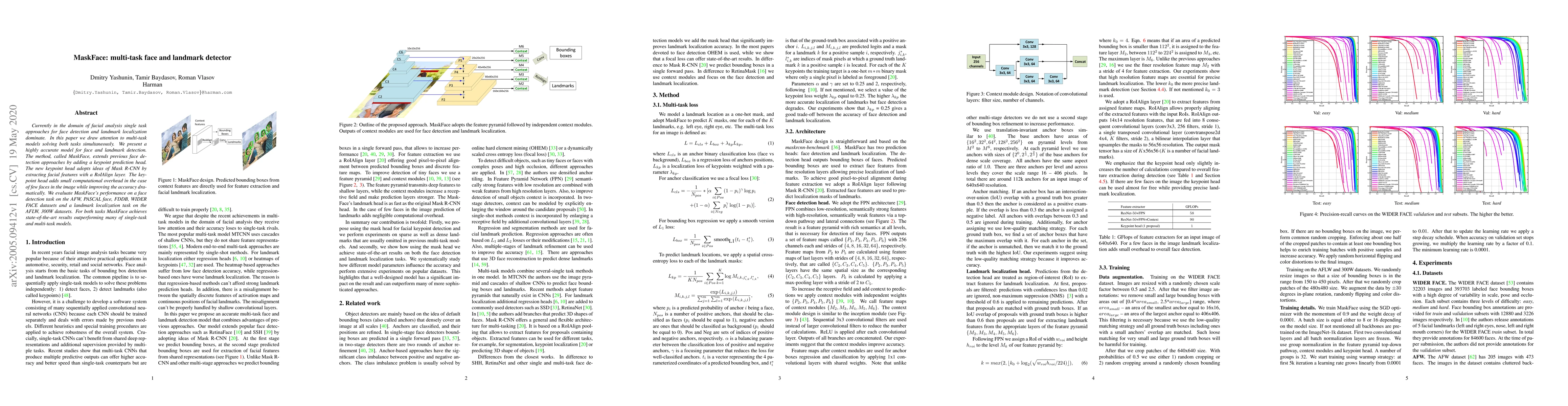 Currently in the domain of facial analysis single task approaches for face detection and landmark localization dominate. In this paper we draw attention to multi-task models solving both tasks simultaneously. We present a highly accurate model for face and landmark detection. The method, called MaskFace, extends previous face detection approaches by adding a keypoint prediction head. The new keypoint head adopts ideas of Mask R-CNN by extracting facial features with a RoIAlign layer. The keypoint head adds small computational overhead in the case of few faces in the image while improving the accuracy dramatically. We evaluate MaskFace's performance on a face detection task on the AFW, PASCAL face, FDDB, WIDER FACE datasets and a landmark localization task on the AFLW, 300W datasets. For both tasks MaskFace achieves state-of-the-art results outperforming many of single-task and multi-task models.