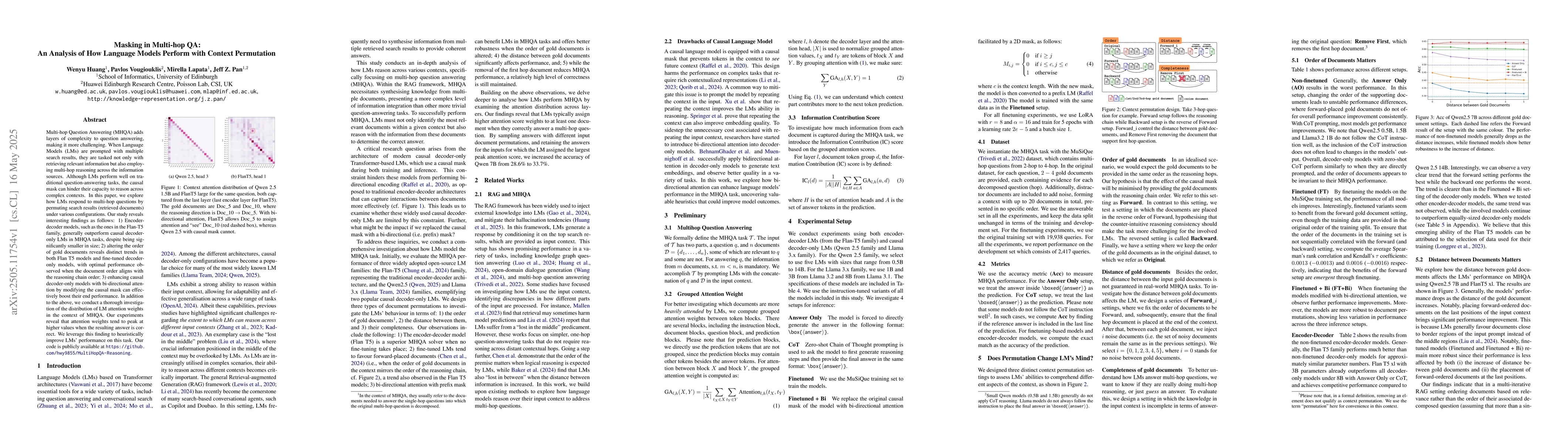The paper presents a method of context permutation to analyze LM performance in MHQA and demonstrates the effectiveness of bi-directional attention modifications for decoder-only models.