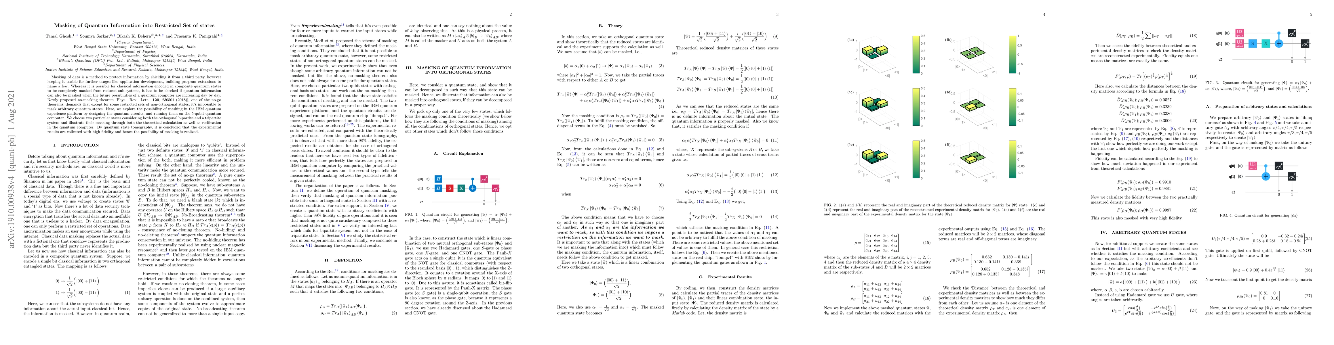 This paper investigates the feasibility of masking quantum information within restricted sets of states, demonstrating the process on IBM's quantum experience platform using 5-qubit quantum computers. Experimental results, verified through quantum state tomography, confirm the successful masking of chosen quantum states with high fidelity.