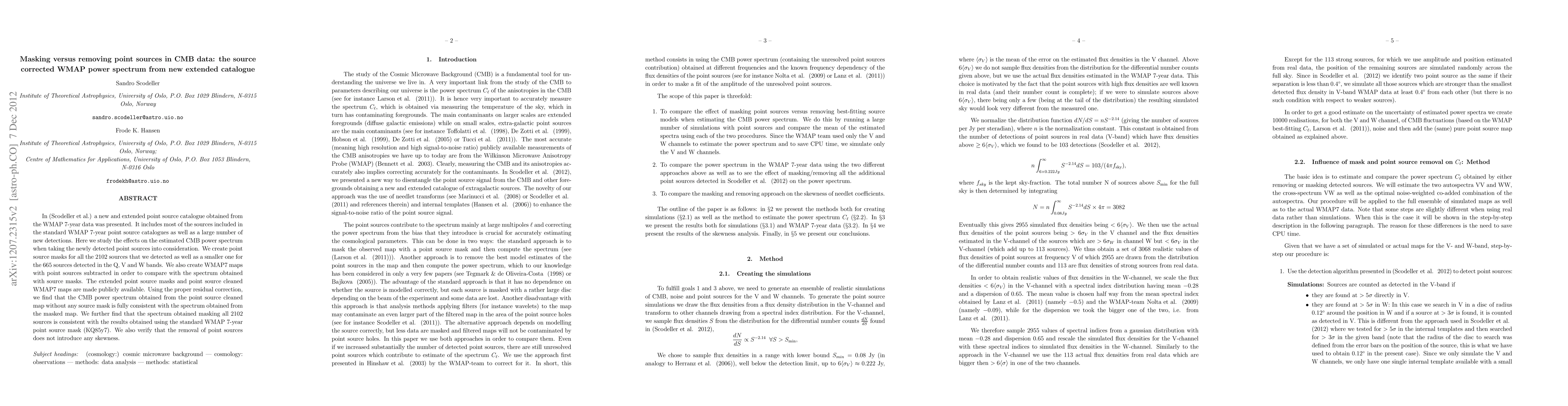 This paper investigates the impact of masking versus removing point sources in WMAP 7-year Cosmic Microwave Background (CMB) data using a new extended catalogue. The study finds that the CMB power spectrum is consistent whether all detected sources are masked or removed, confirming no skewness from source removal.