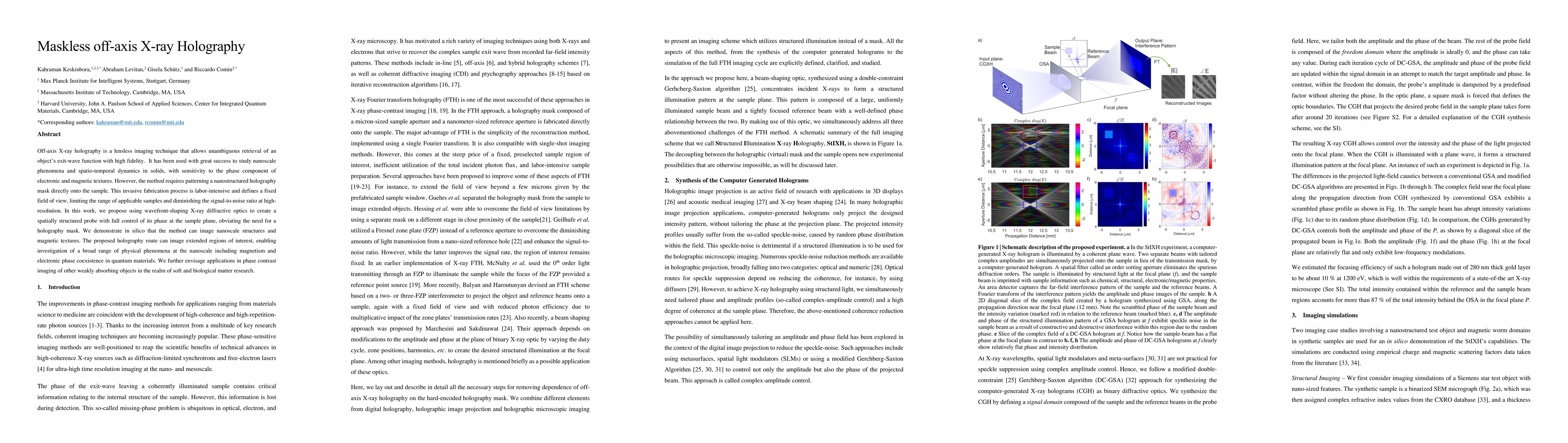 This paper proposes a maskless off-axis X-ray holography technique using wavefront-shaping optics to eliminate the need for a holography mask, thus enabling imaging of extended regions and a broader range of nanoscale phenomena. The method shows potential for studying magnetism and electronic textures in quantum materials, as well as phase-contrast imaging in soft biological matter.