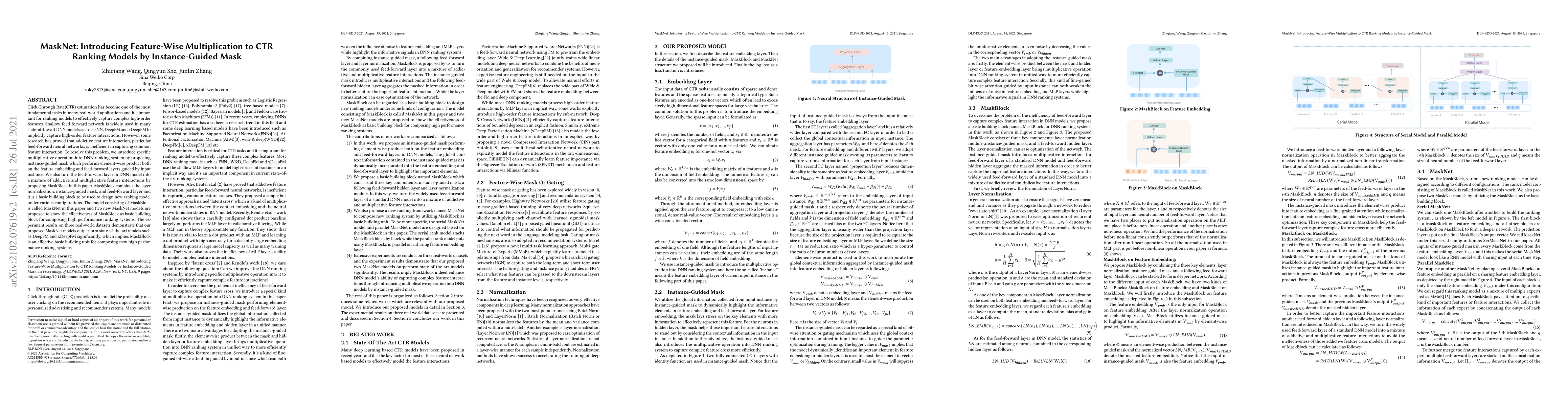 A new deep learning model called MaskNet is proposed to improve click-through rate estimation, which uses a feature-wise multiplication operation to capture high-order features and outperforms state-of-the-art models.