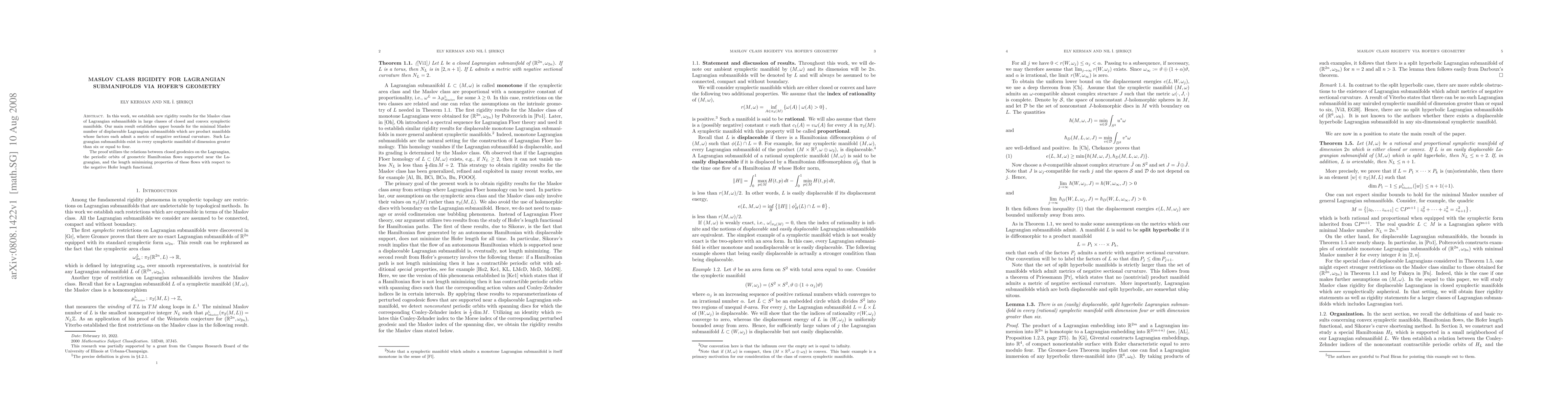 This paper establishes new rigidity results for the Maslov class of Lagrangian submanifolds in symplectic manifolds, showing upper bounds for the minimal Maslov number of displaceable product Lagrangians with negatively curved factors. The proof leverages Hofer's geometry and the relationship between closed geodesics, periodic orbits, and negative Hofer length functionals.