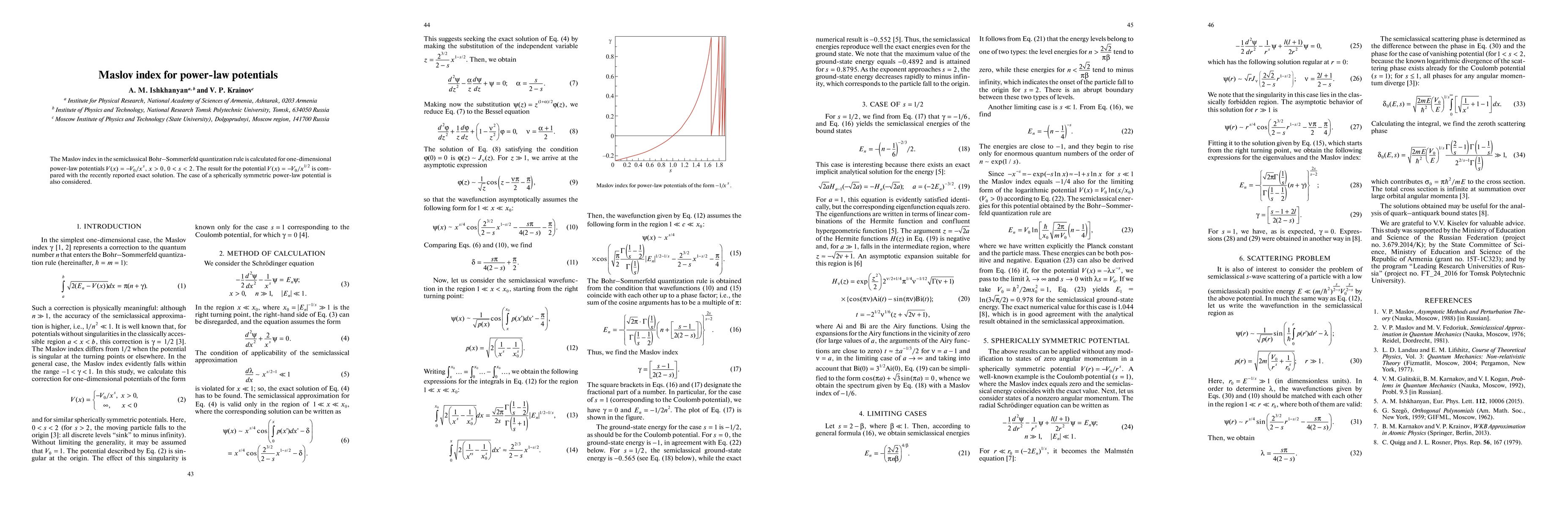 This paper calculates the Maslov index for one-dimensional power-law potentials, comparing the result for the inverse square root potential to an exact solution, and extends the analysis to spherically symmetric power-law potentials. The findings provide deeper insights into semiclassical quantization rules.