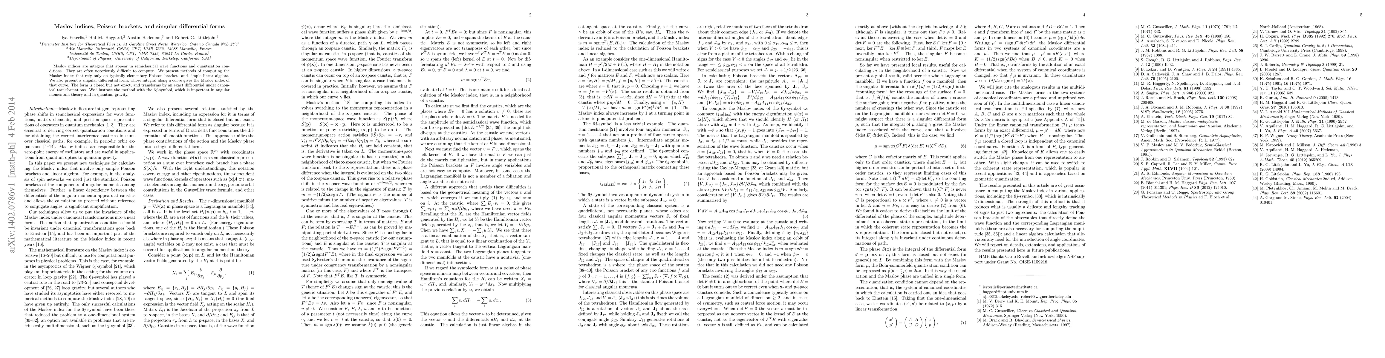 This paper introduces new methods for calculating Maslov indices using Poisson brackets and linear algebra, alongside a singular differential form integral that gives the Maslov index. It also applies these methods to the $6j$-symbol, linking the findings to angular momentum theory and quantum gravity.