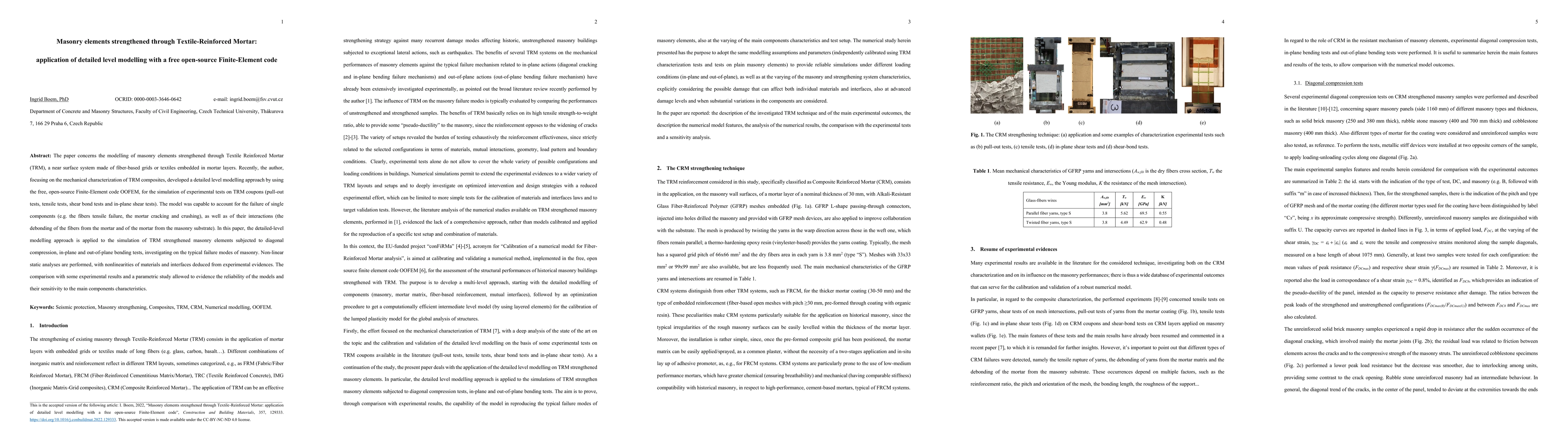 This paper models masonry elements reinforced with Textile-Reinforced Mortar (TRM) using detailed-level simulations with the open-source Finite-Element code OOFEM. The study investigates the failure modes of TRM-strengthened masonry through non-linear static analyses, comparing the results with experimental data to validate the model's reliability.