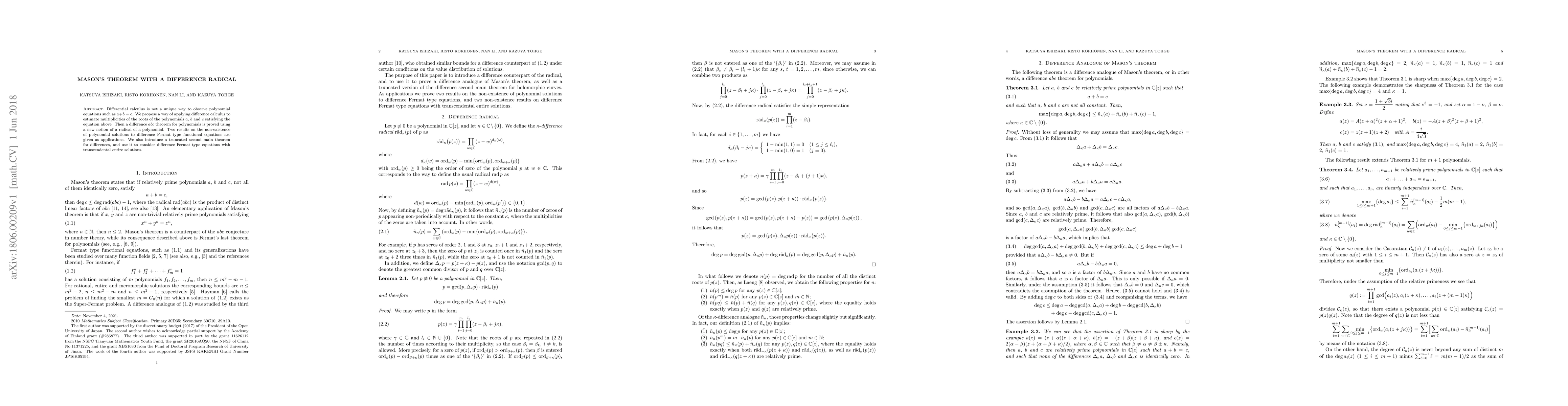 This paper proposes using difference calculus to estimate root multiplicities of polynomials and introduces a new radical notion. It proves a difference $abc$ theorem and discusses non-existence results for difference Fermat type equations, along with a truncated second main theorem for differences applied to transcendental entire solutions.