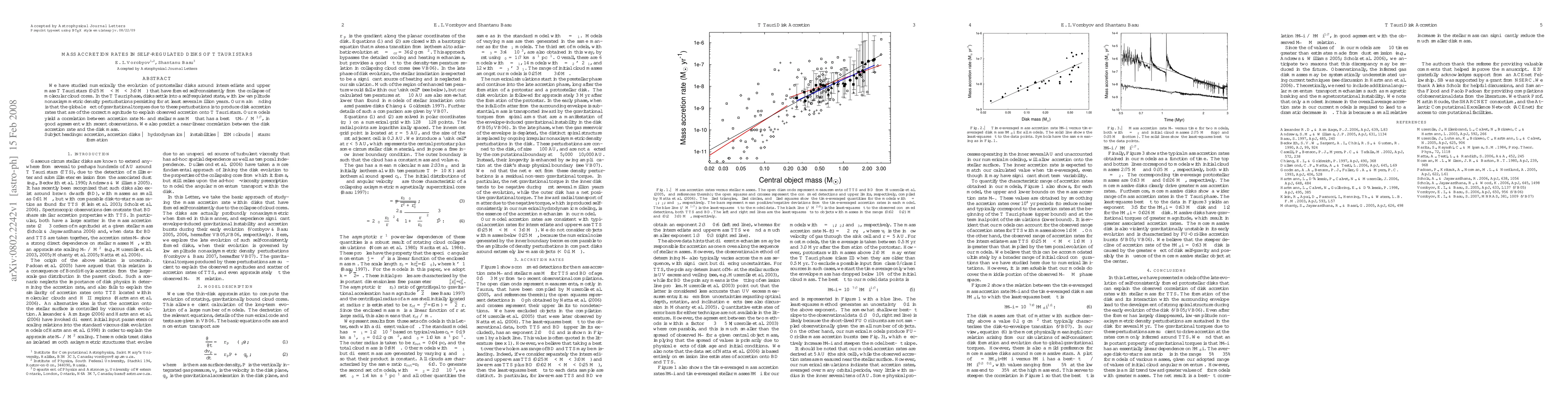 This study numerically models the evolution of protostellar disks around T Tauri stars, finding that self-regulated disks maintain accretion rates consistent with observations. The research reveals a correlation between accretion rate and stellar mass, best fitting M_dot ∝ M_st^{1.7}, aligning with recent observational data.