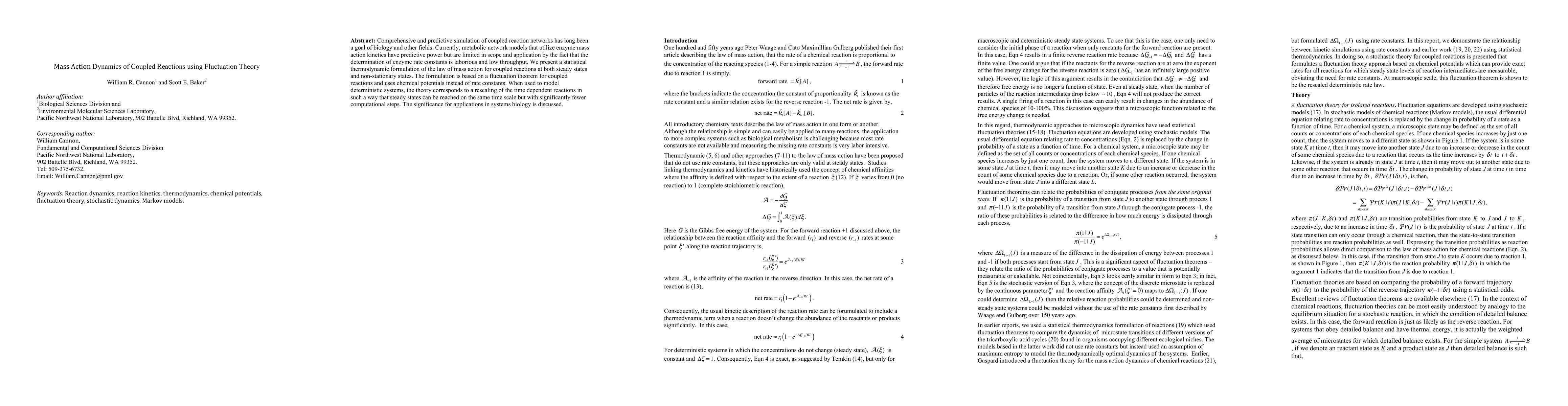 Comprehensive and predictive simulation of coupled reaction networks has long been a goal of biology and other fields. Currently, metabolic network models that utilize enzyme mass action kinetics have predictive power but are limited in scope and application by the fact that the determination of enzyme rate constants is laborious and low throughput. We present a statistical thermodynamic formulation of the law of mass action for coupled reactions at both steady states and non-stationary states. The formulation is based on a fluctuation theorem for coupled reactions and uses chemical potentials instead of rate constants. When used to model deterministic systems, the theory corresponds to a rescaling of the time dependent reactions in such a way that steady states can be reached on the same time scale but with significantly fewer computational steps. The significance for applications in systems biology is discussed.