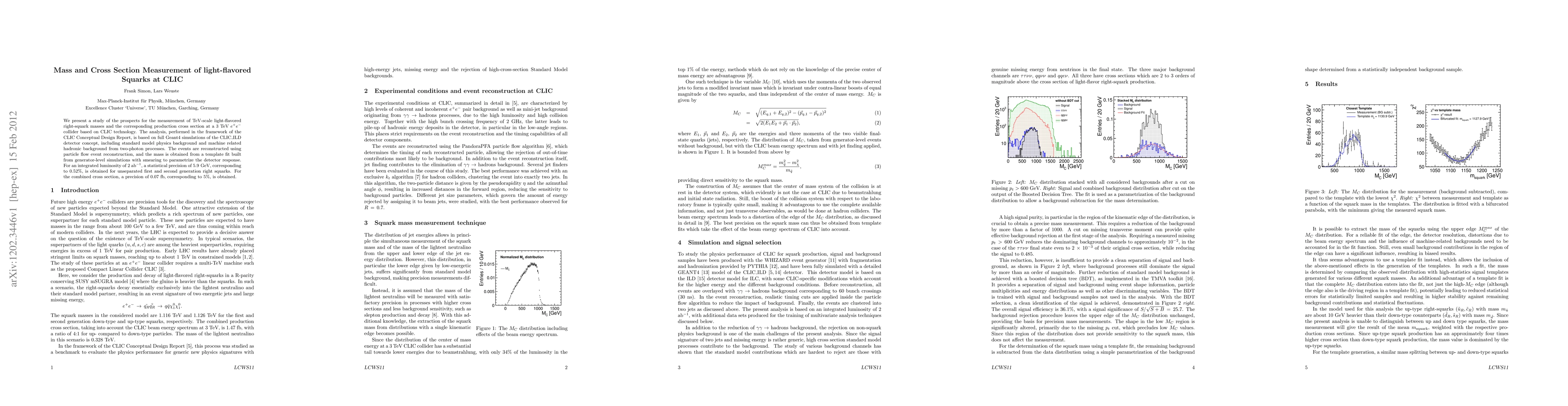 Researchers at CLIC propose a method to measure TeV-scale light-flavored squark masses with high precision, aiming for 0.52% accuracy, and predict a cross-section precision of 5%.