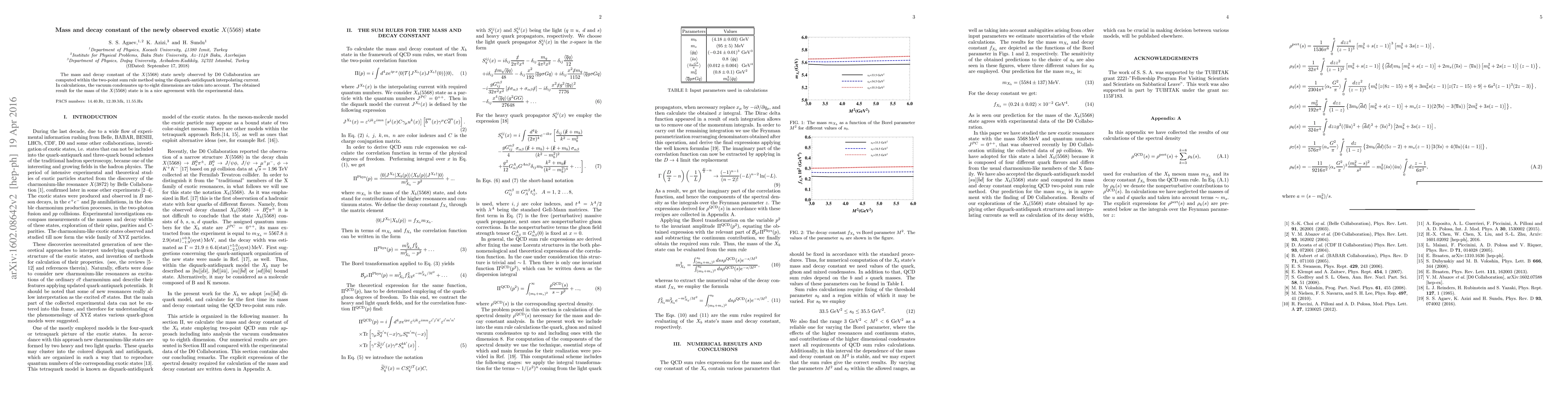 Researchers used a theoretical method to calculate the mass and decay constant of the newly discovered $X(5568)$ state, finding an agreement with experimental data.