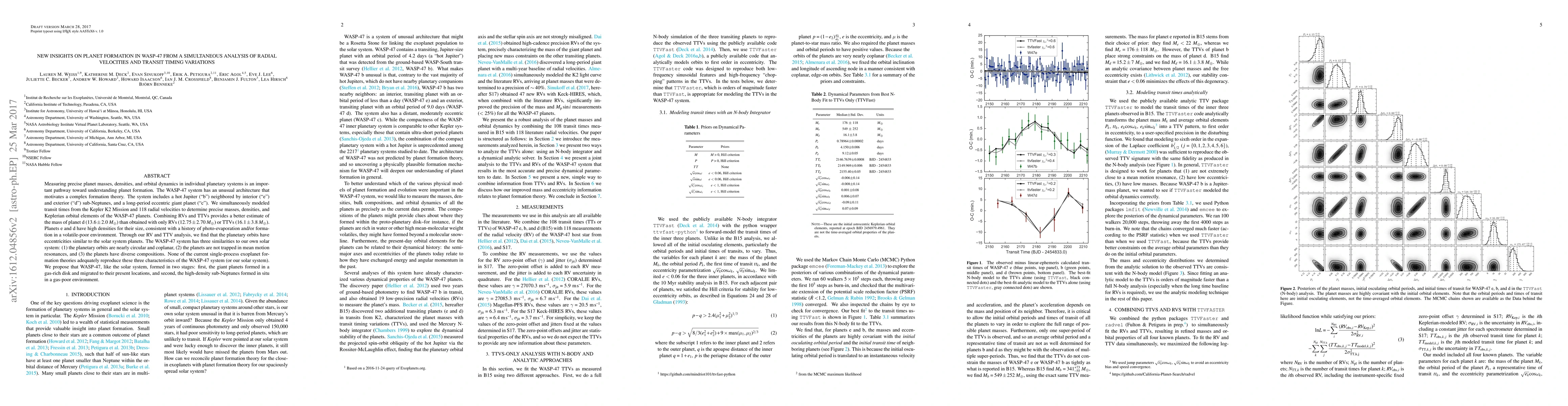 This research presents a comprehensive analysis of the WASP-47 system, combining RVs and TTVs to constrain planetary properties and proposing a two-stage formation hypothesis that aligns with solar system characteristics.