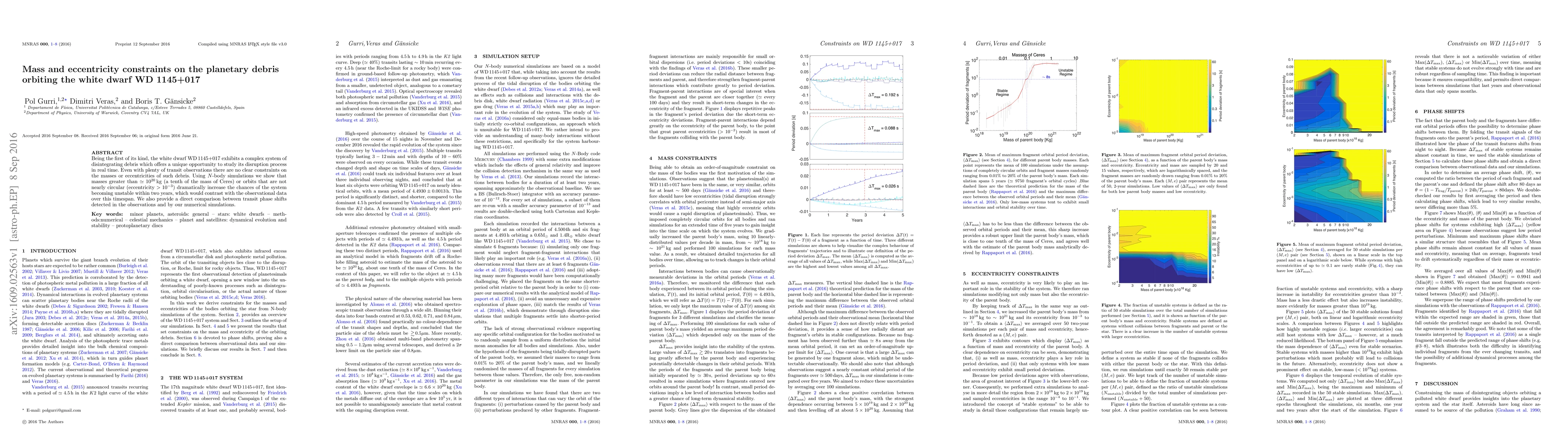 Being the first of its kind, the white dwarf WD 1145+017 exhibits a complex system of disintegrating debris which offers a unique opportunity to study its disruption process in real time. Even with plenty of transit observations there are no clear constraints on the masses or eccentricities of such debris. Using $N$-body simulations we show that masses greater than approximately $10^{20}$ kg (a tenth of the mass of Ceres) or orbits that are not nearly circular ($\mathrm{eccentricity}>10^{-3}$) dramatically increase the chances of the system becoming unstable within two years, which would contrast with the observational data over this timespan. We also provide a direct comparison between transit phase shifts detected in the observations and by our numerical simulations.