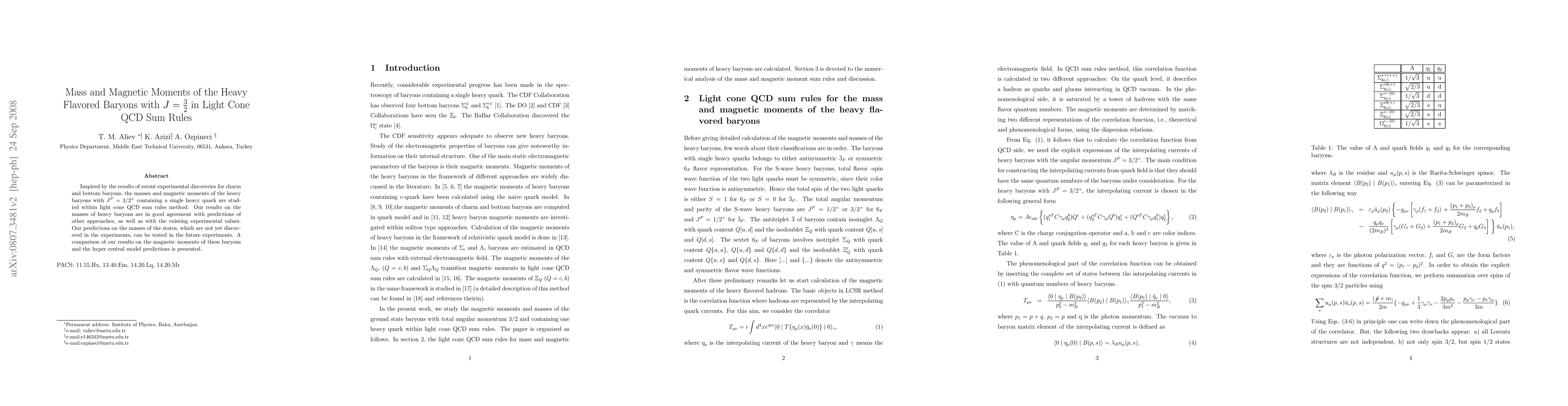 This paper uses the light cone QCD sum rules to determine the masses and magnetic moments of heavy flavored baryons with $J^P=3/2^+$. The calculated masses align well with other theoretical predictions and experimental data, and the magnetic moments are compared with hyper central model predictions.